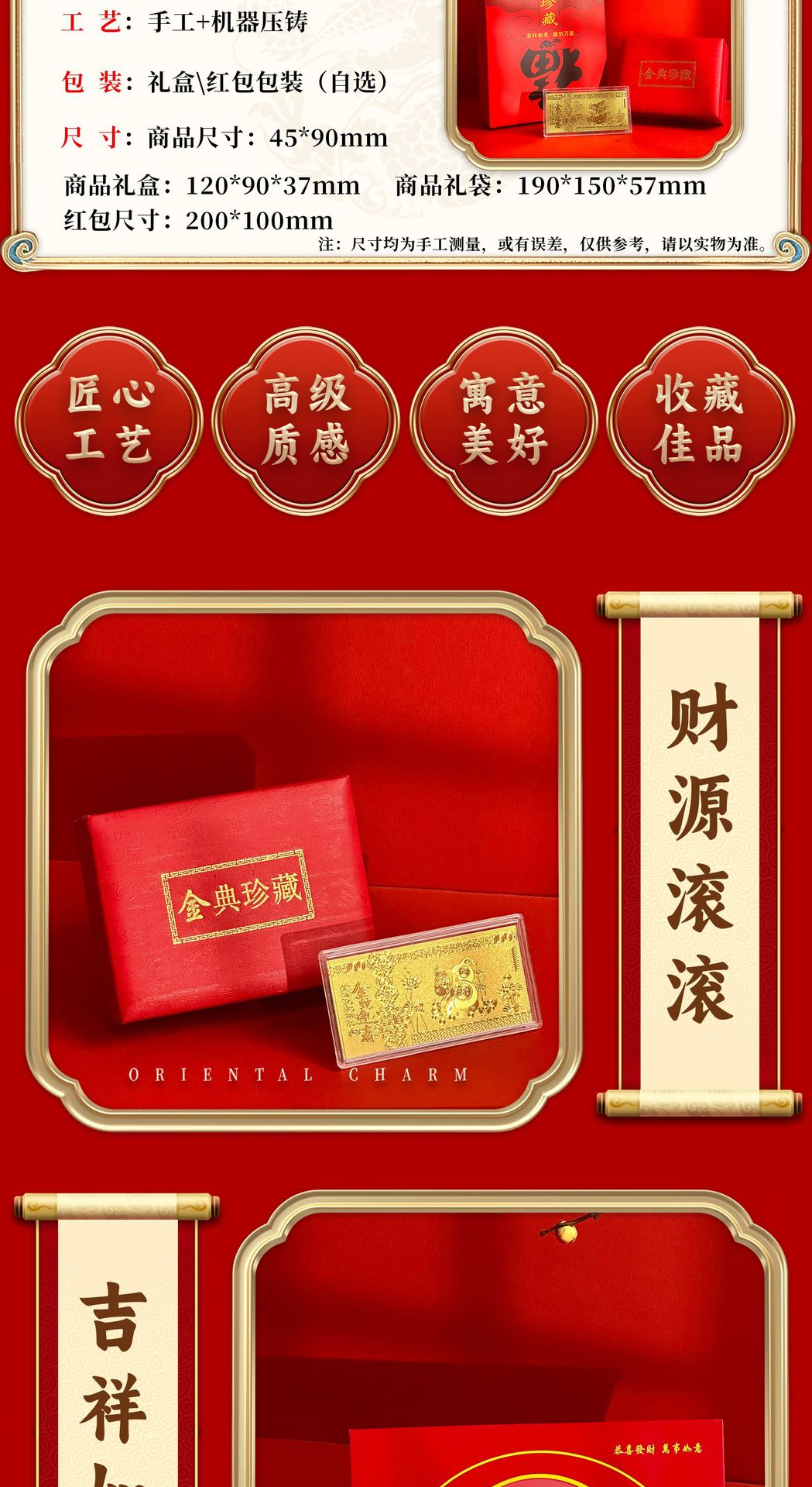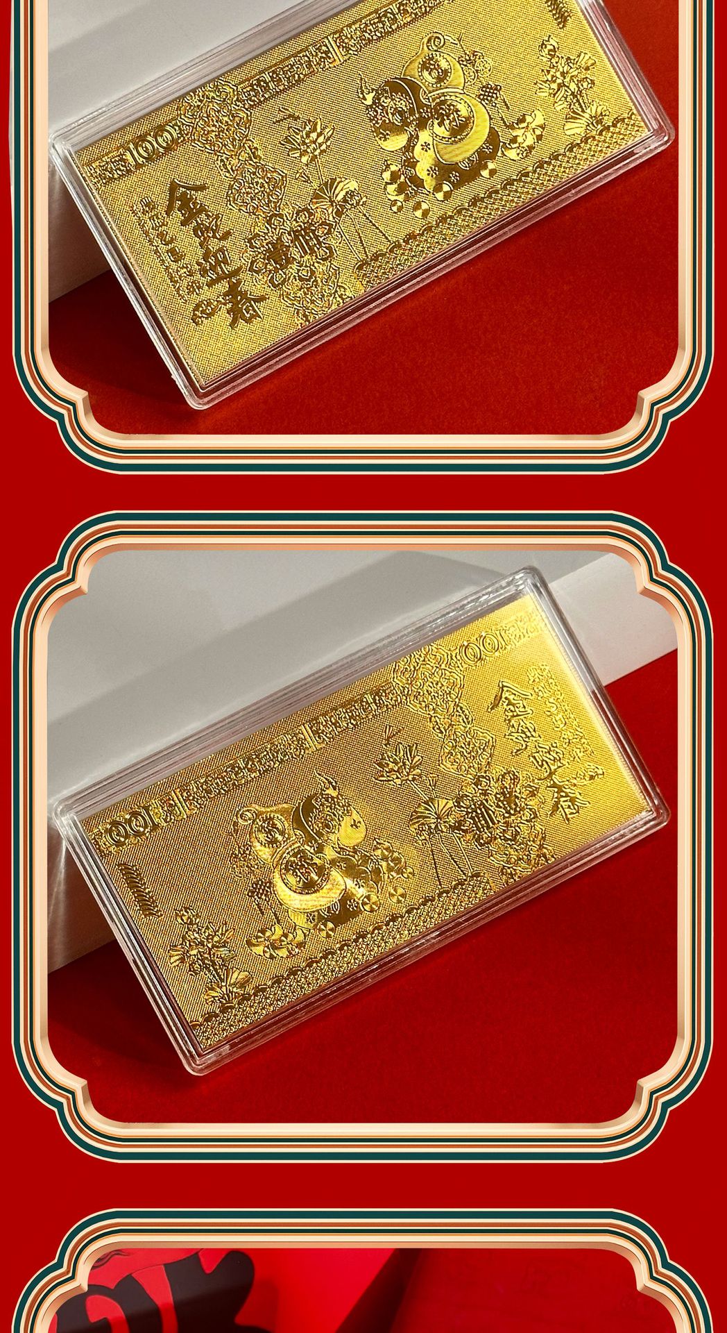small gold bar + acrylic shell + red envelope