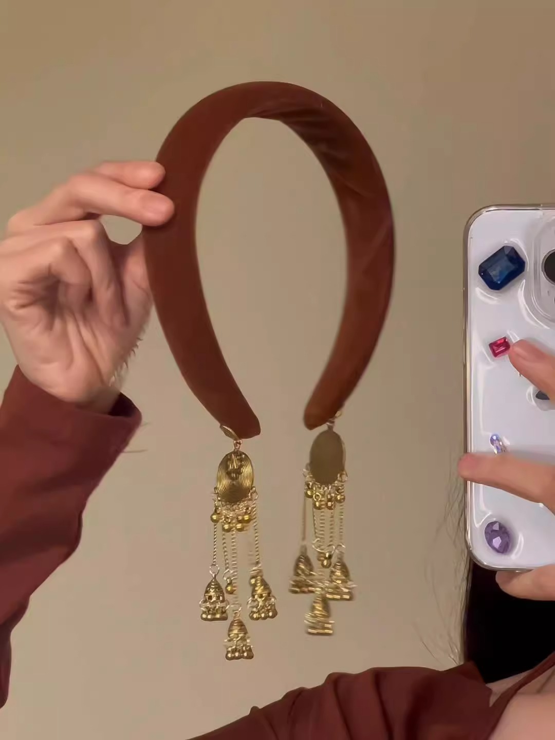 maillard velvet bilateral rattle headband (lower end of tassel)