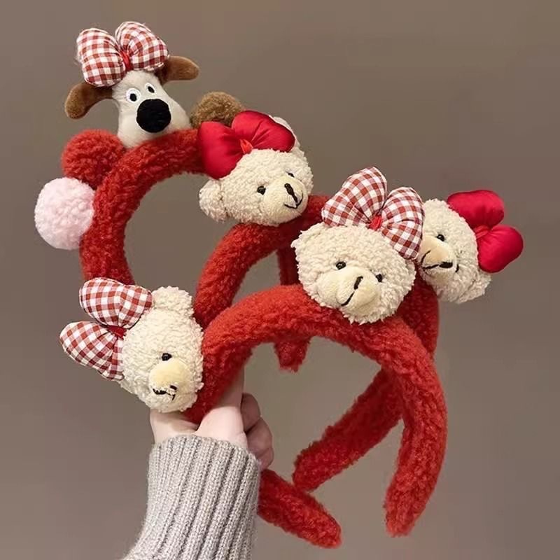 red bear plaid bow headband