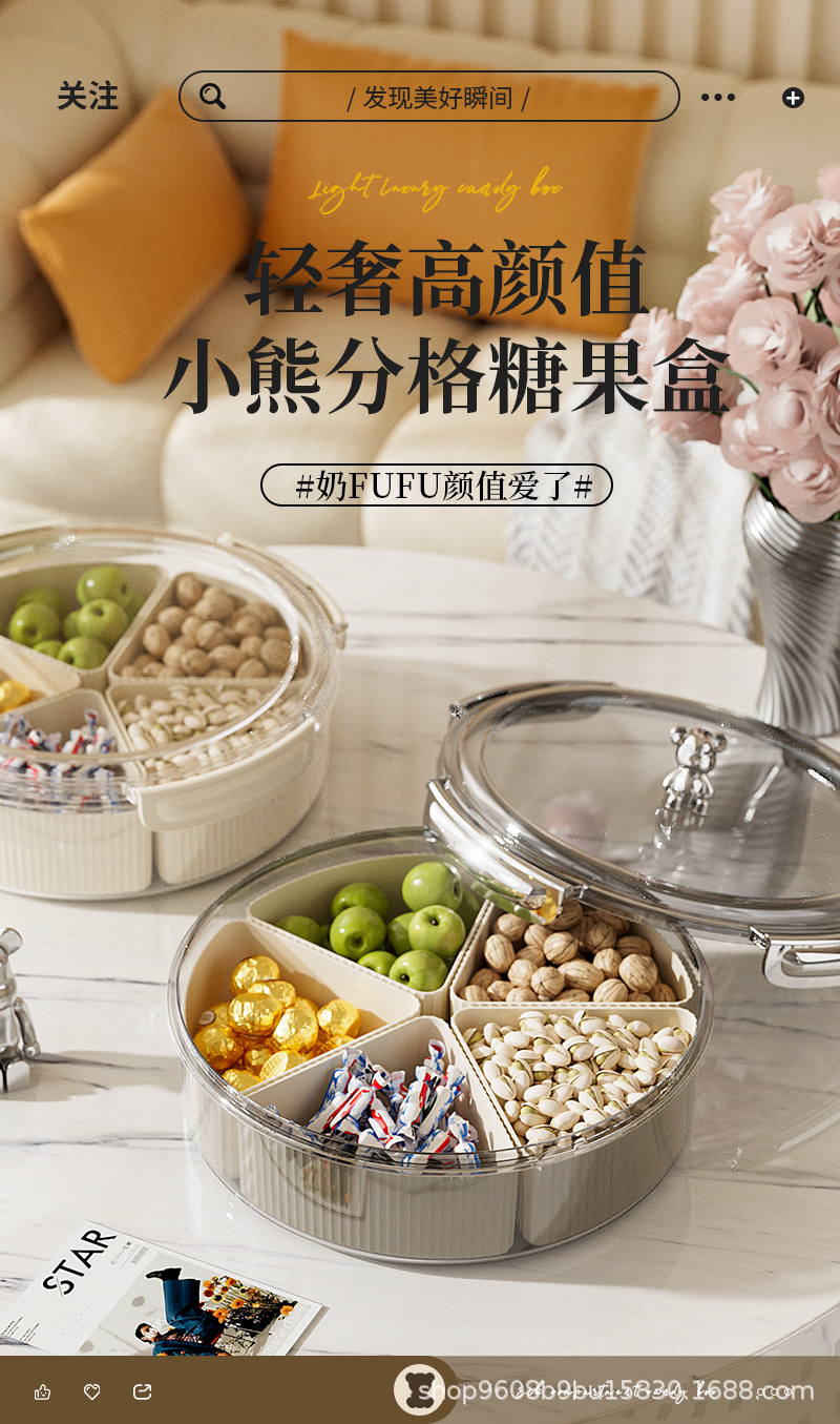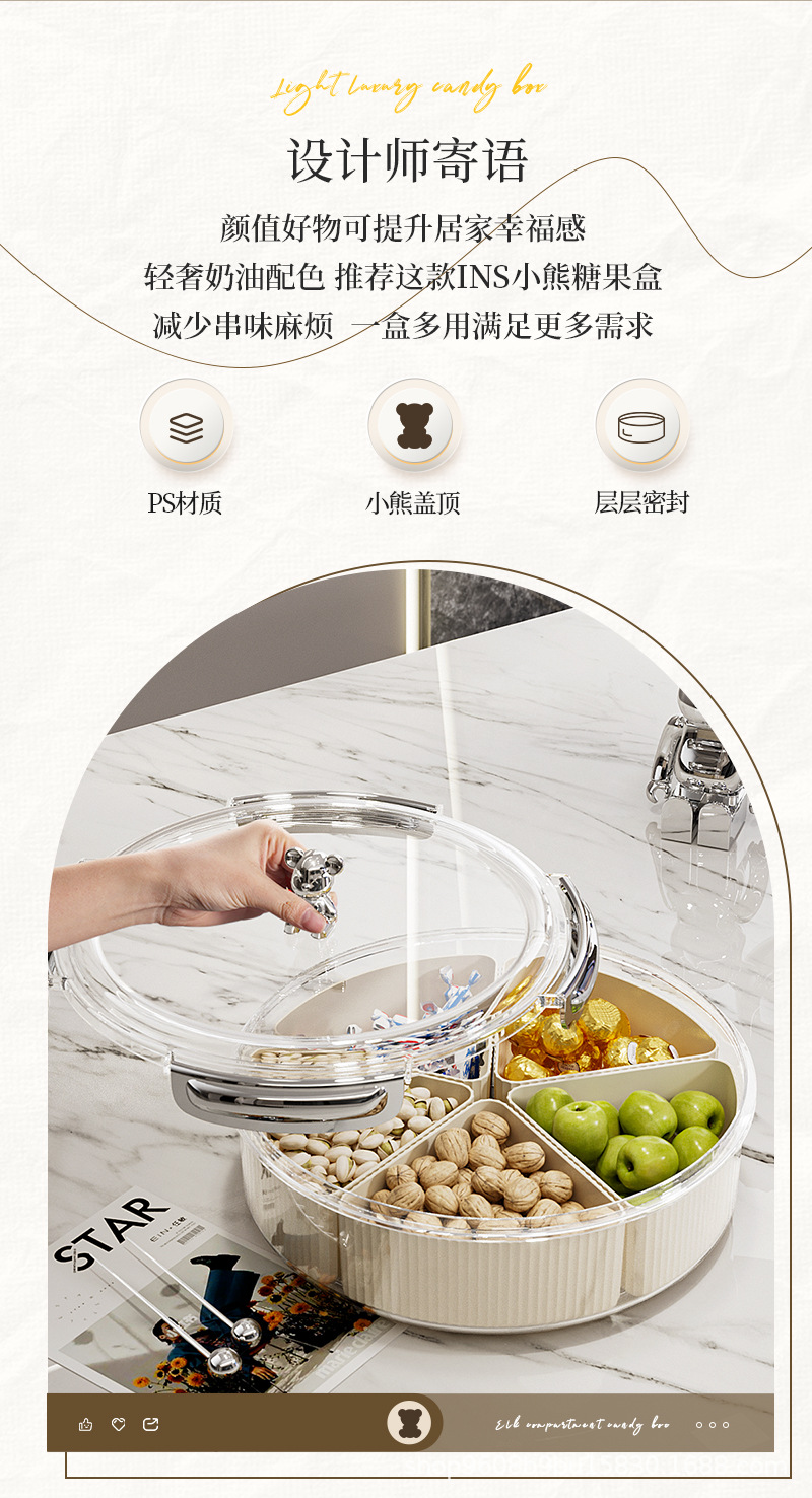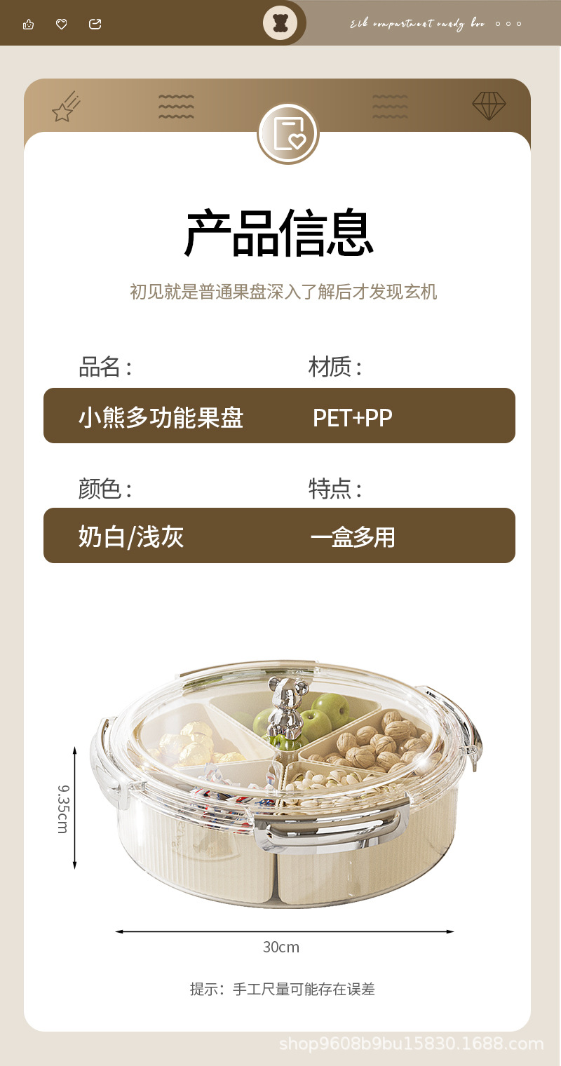 transparent white pet separated candy plate [milky white handle] (with bear)