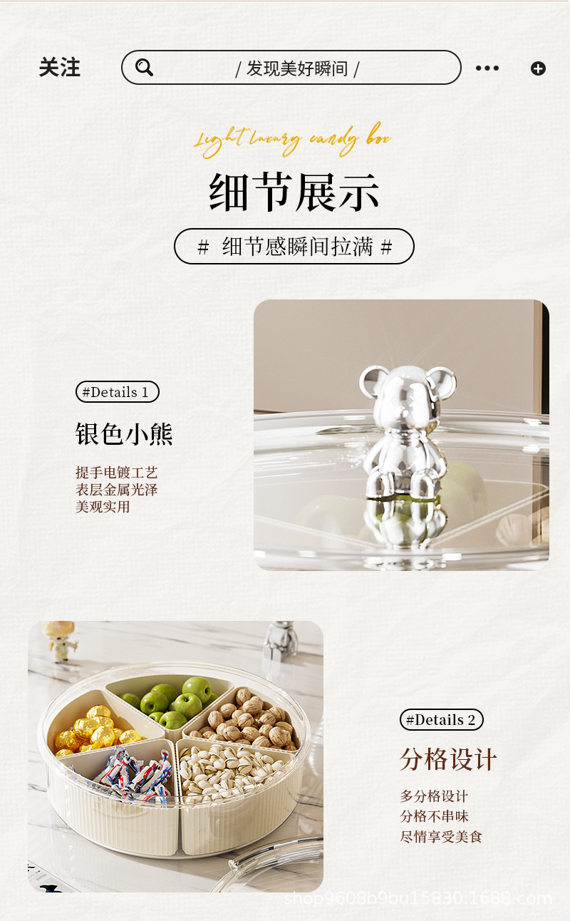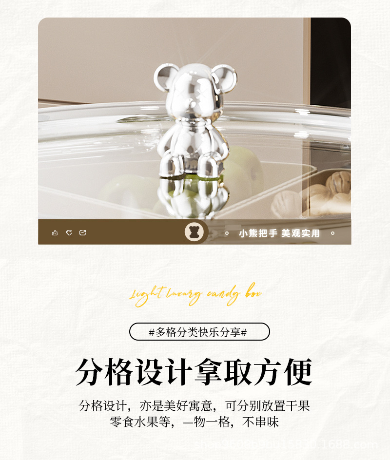 transparent white pet separated candy plate [silver electroplated handle] (with bear)