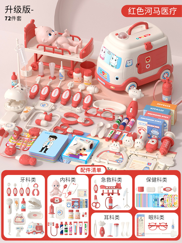 [large ambulance storage] pink 72 pieces suit + doll + therapeutic bed