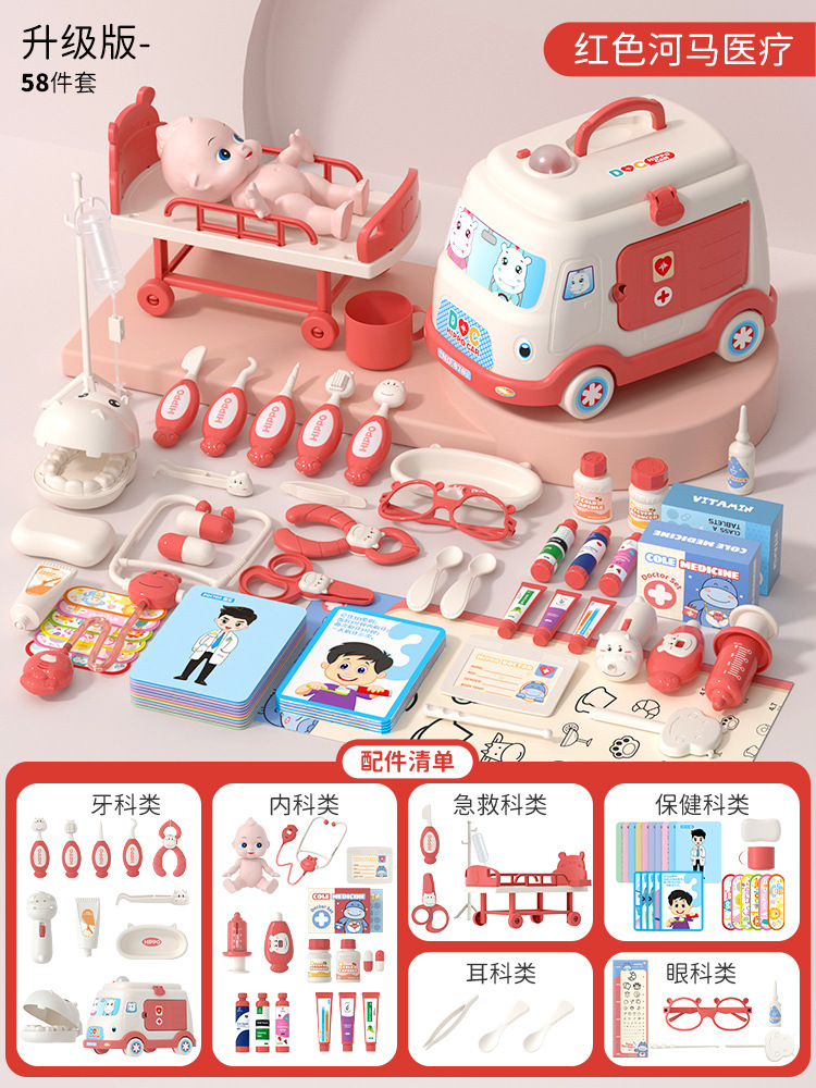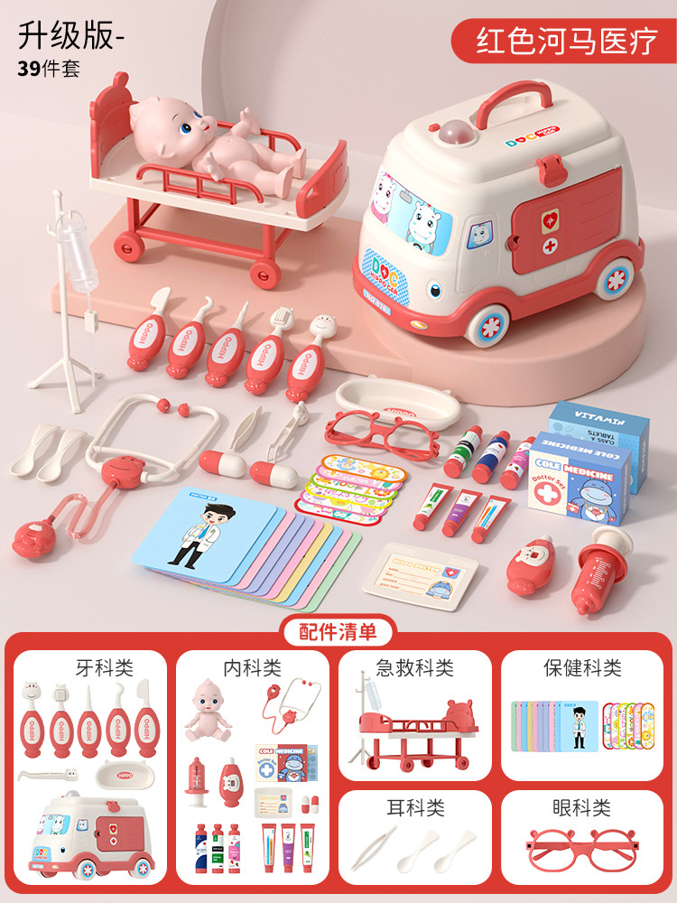 [large ambulance storage] pink 58 pieces suit + doll + therapeutic bed