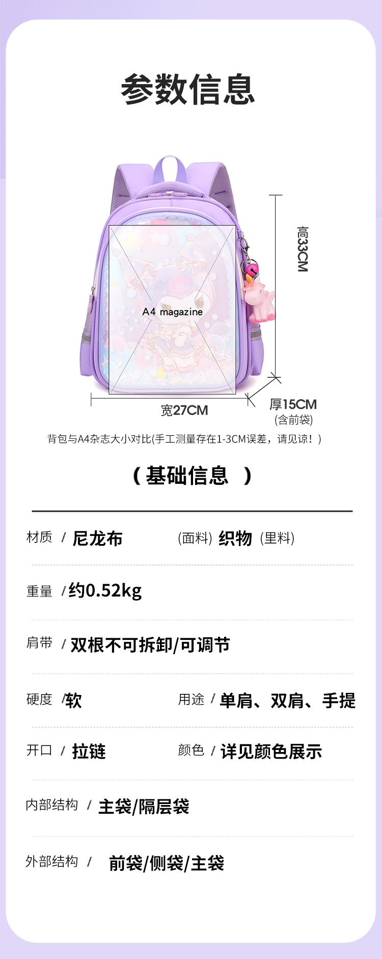 children's schoolbag cute girl's western style backpack cartoon backpack
