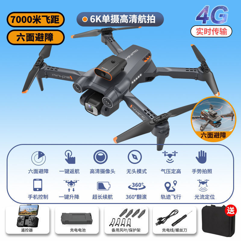obstacle avoidance-orange 6k single camera anti-wind fixed high increase stability anti-shake return-three batteries [present and deliver