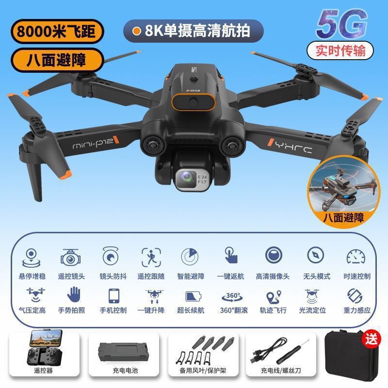 obstacle avoidance-black 8k single camera anti-wind fixed high increase stability anti-shake return-one battery [present and deliver