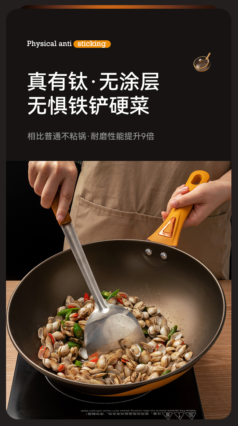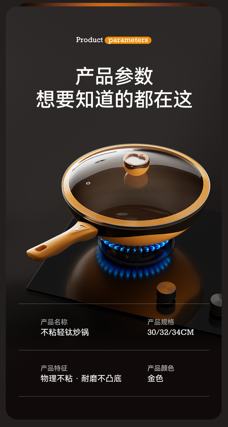 34 golden wok + tempered cover + attached ear