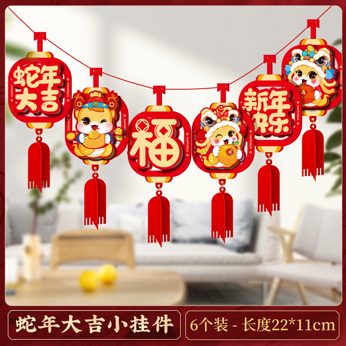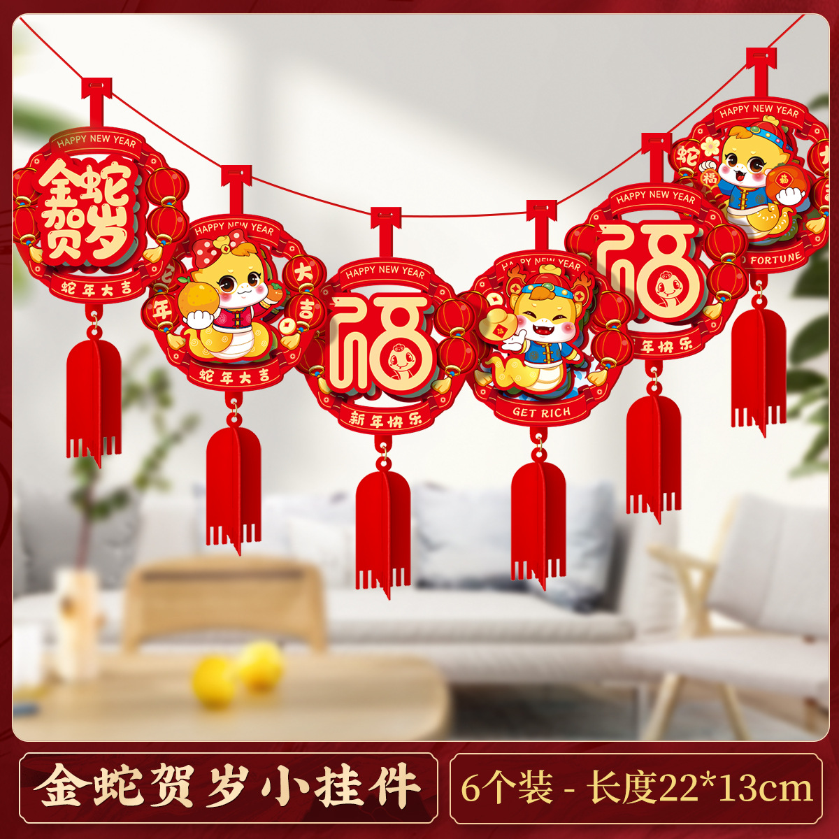 happy new year three-dimensional pendant (6 pieces)