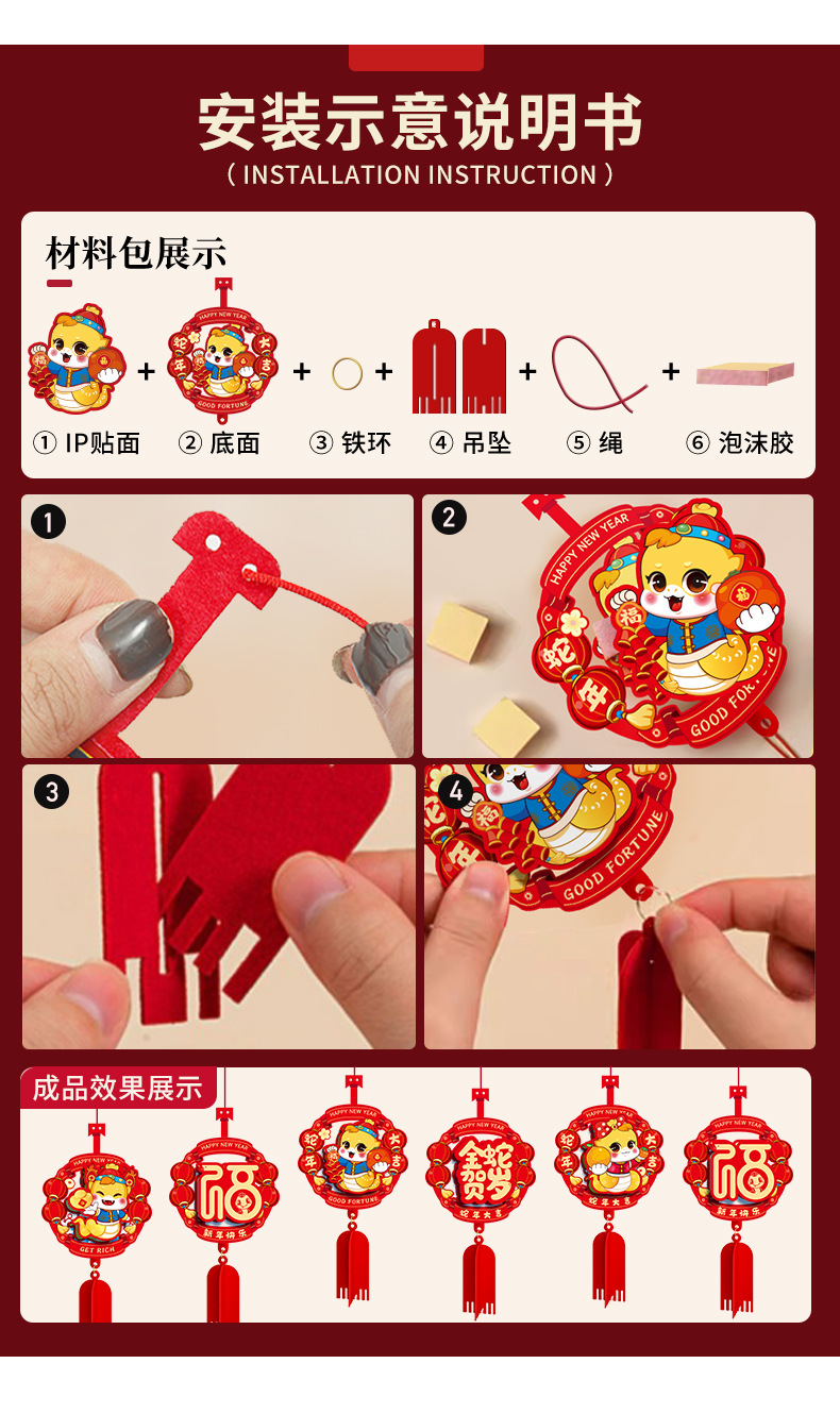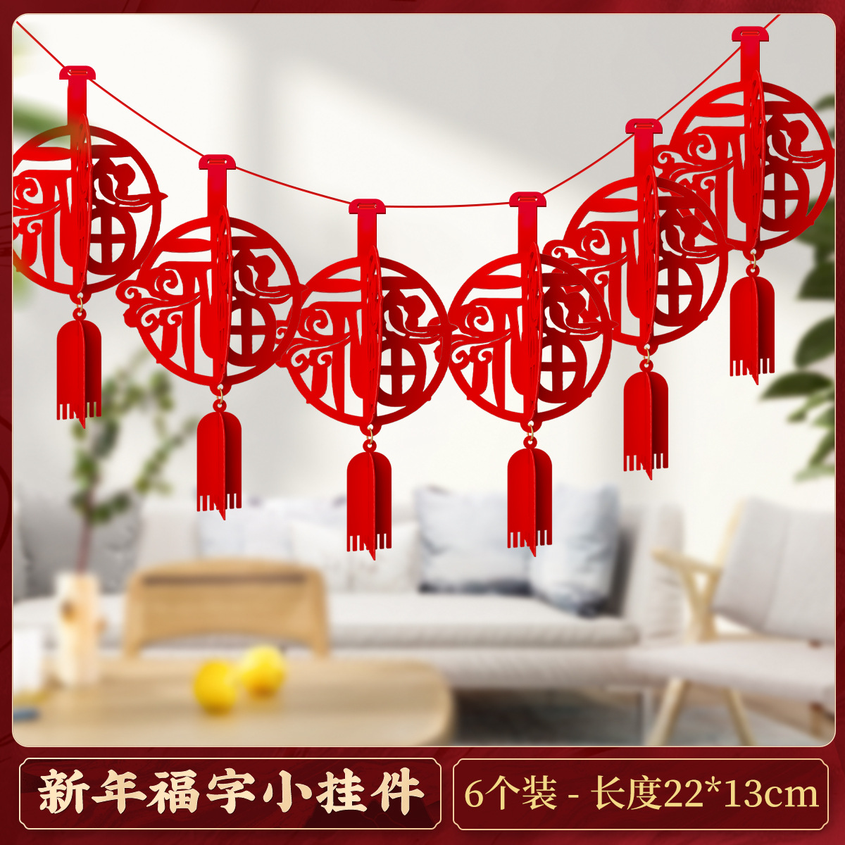 fu character three-dimensional pendant (6 pieces)