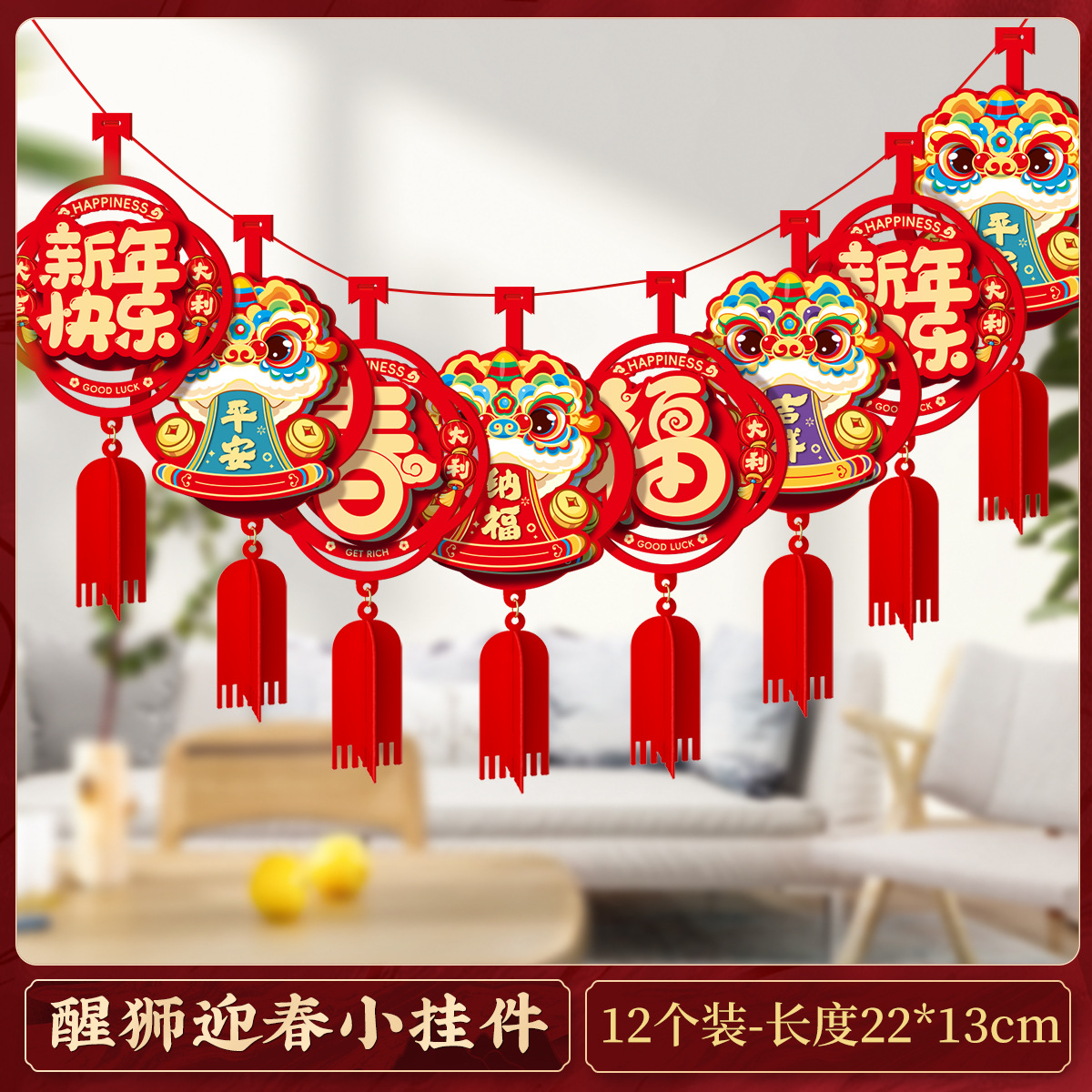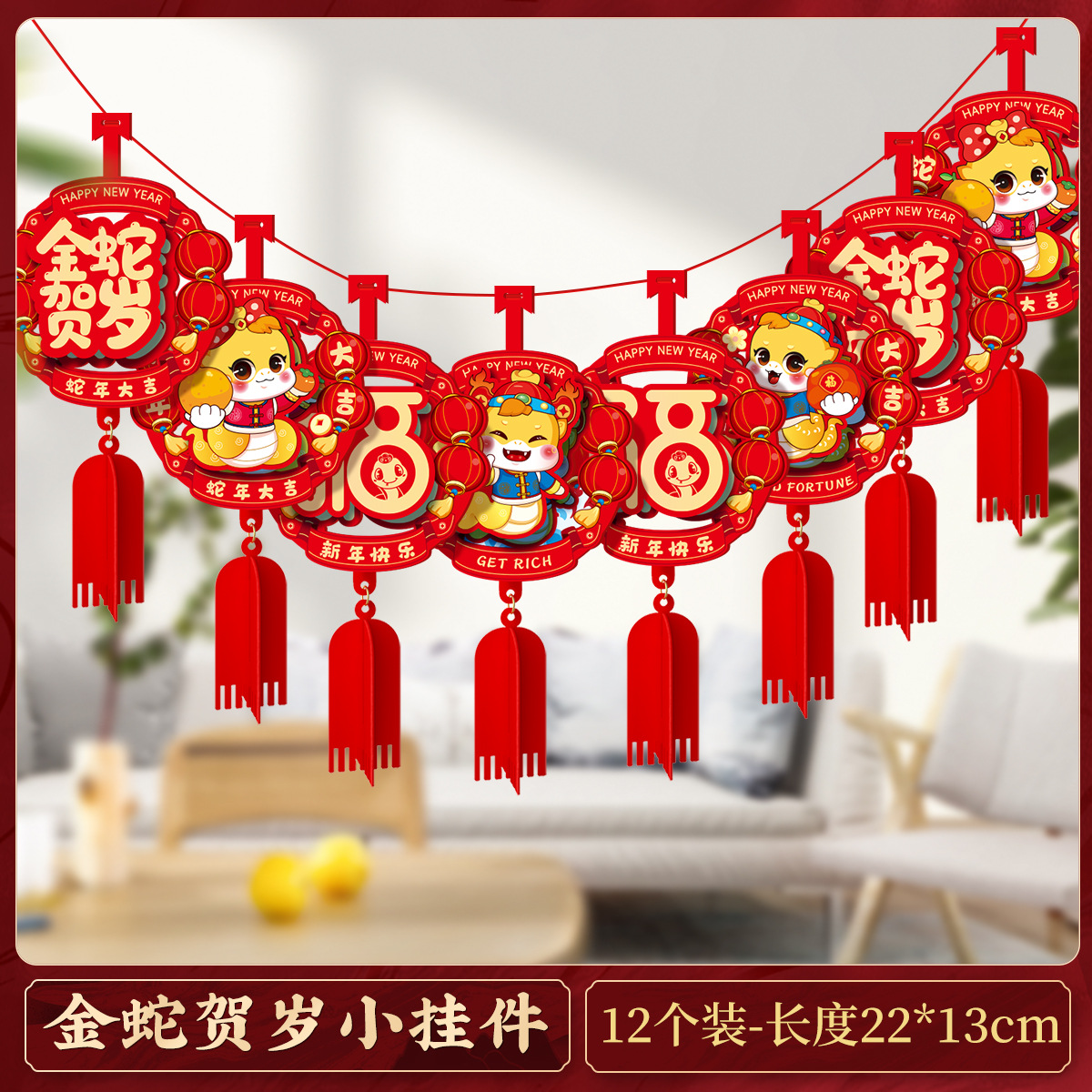 happy new year three-dimensional pendant (12 pieces)