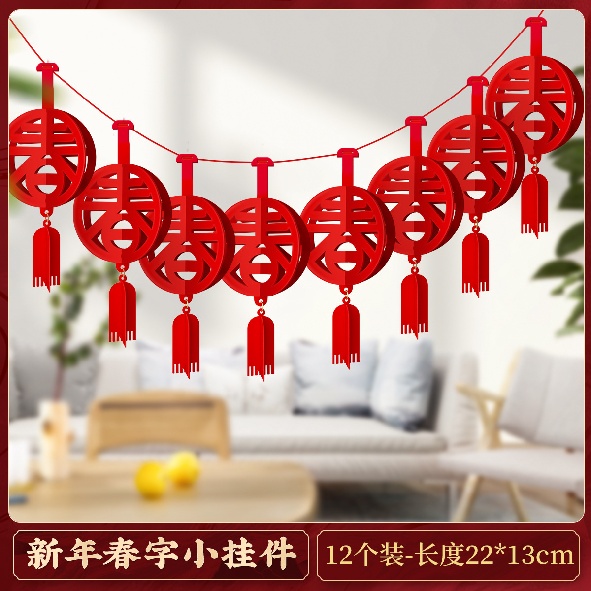 fu character three-dimensional pendant (12 pieces)