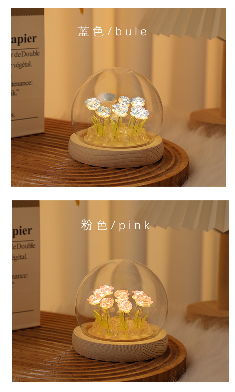 foreign trade exclusive new rose handmade diy small night lamp solid wood luminous base christmas gifts for classmates gift