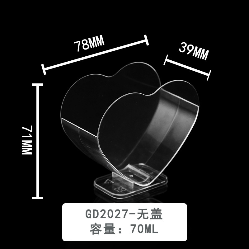 disposable transparent plastic love heart pudding cup mini heart mousse cup