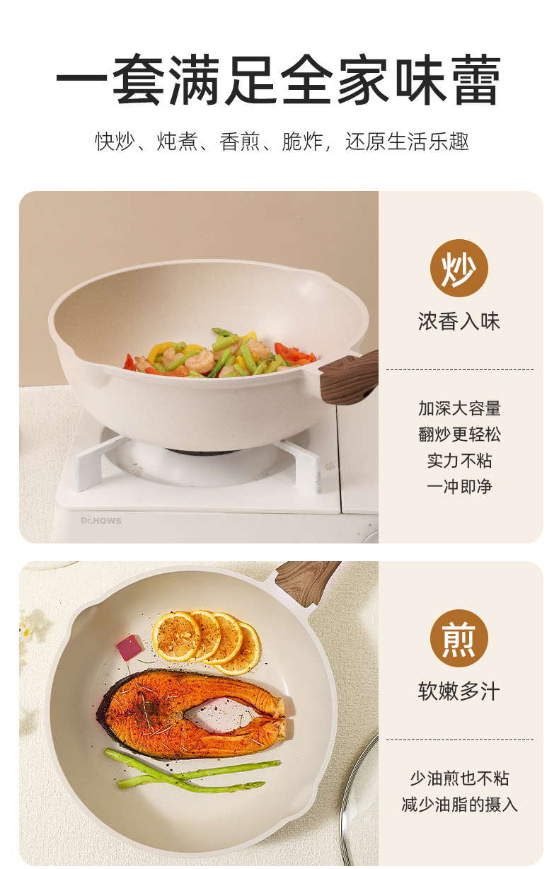 18 milk pot +24 soup pot +24 frying pan +28 wok (internal and external water-based)