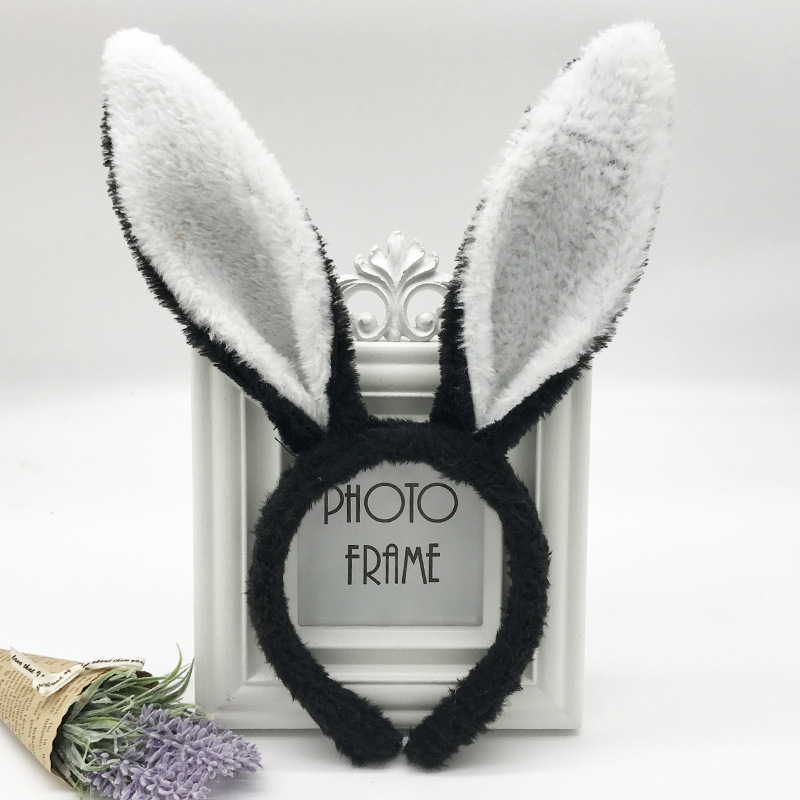 black and white plush rabbit ears