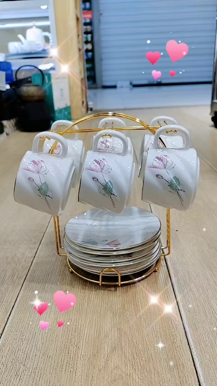 咖啡杯碟6杯6碟陶瓷咖啡杯米饭碗汤碗陶瓷咖啡杯珍珠手柄陶瓷杯
