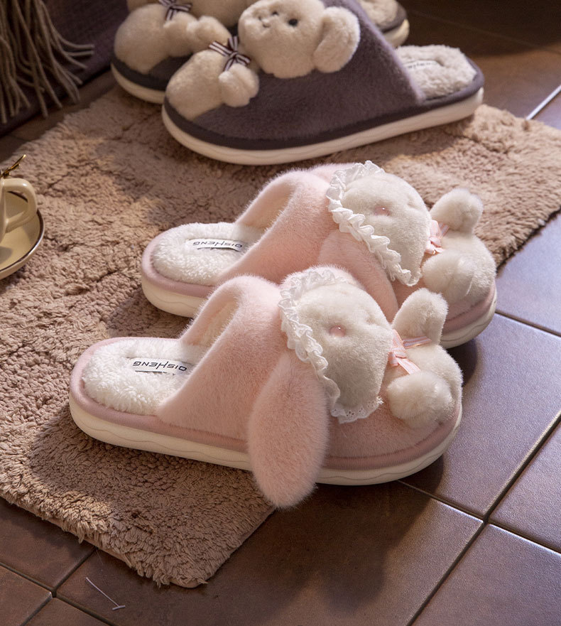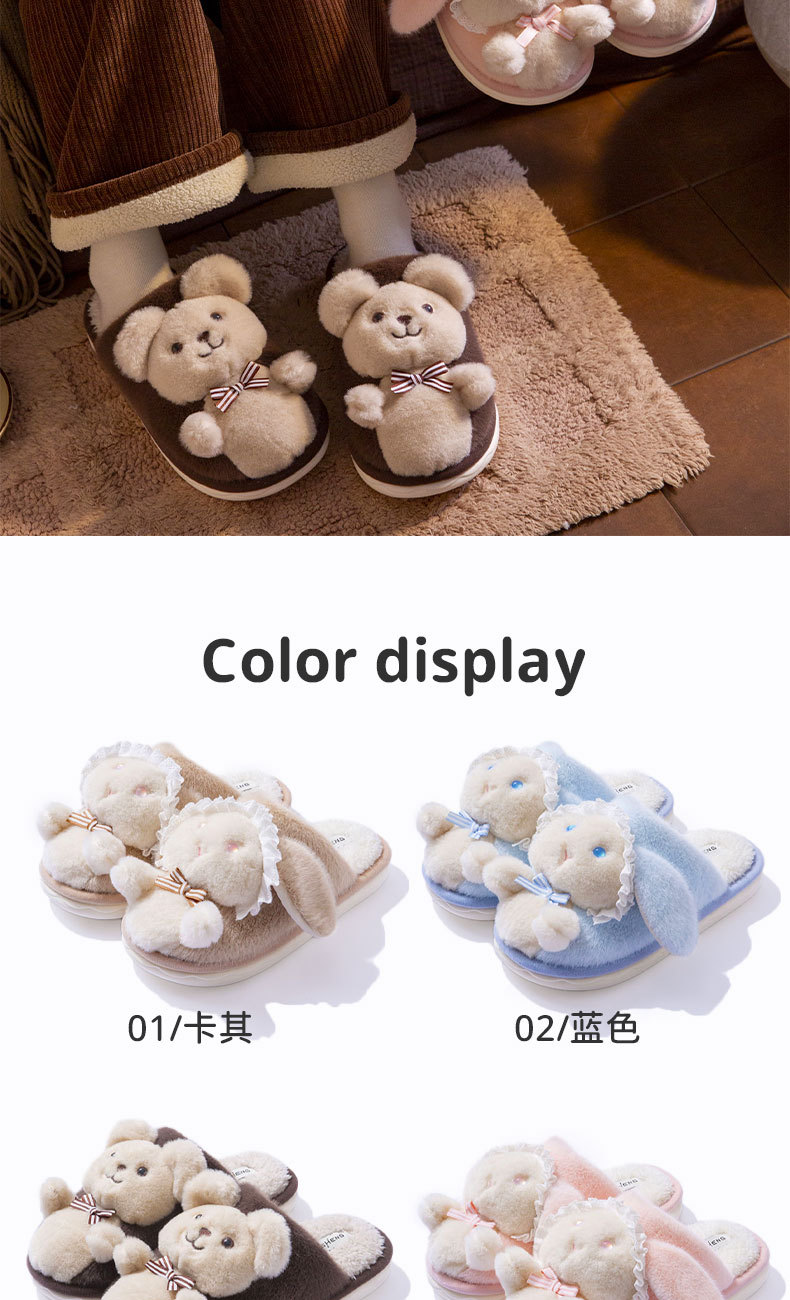 autumn and winter new cartoon cute cotton slippers female lolita household indoor couple warm