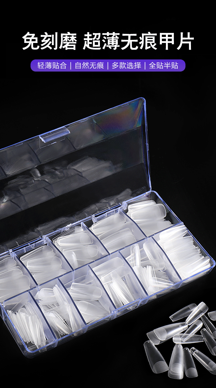 500 pieces boxed nail tips light and thin seamless carving-free grinding full stickers semi-nail sticky for nail beauty shop nail pieces wholesale