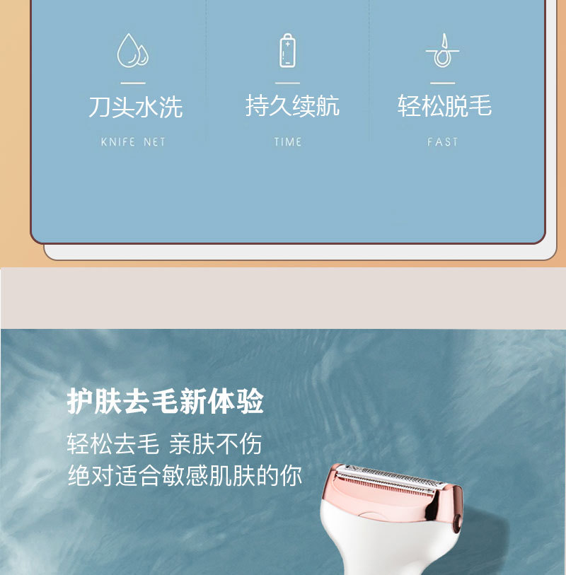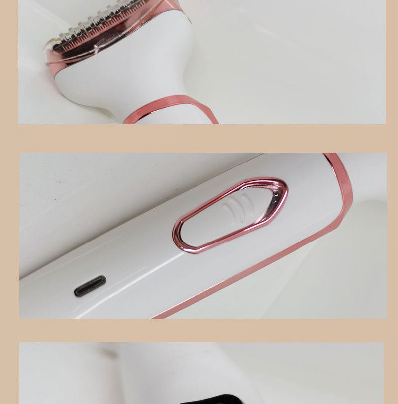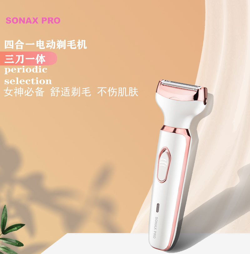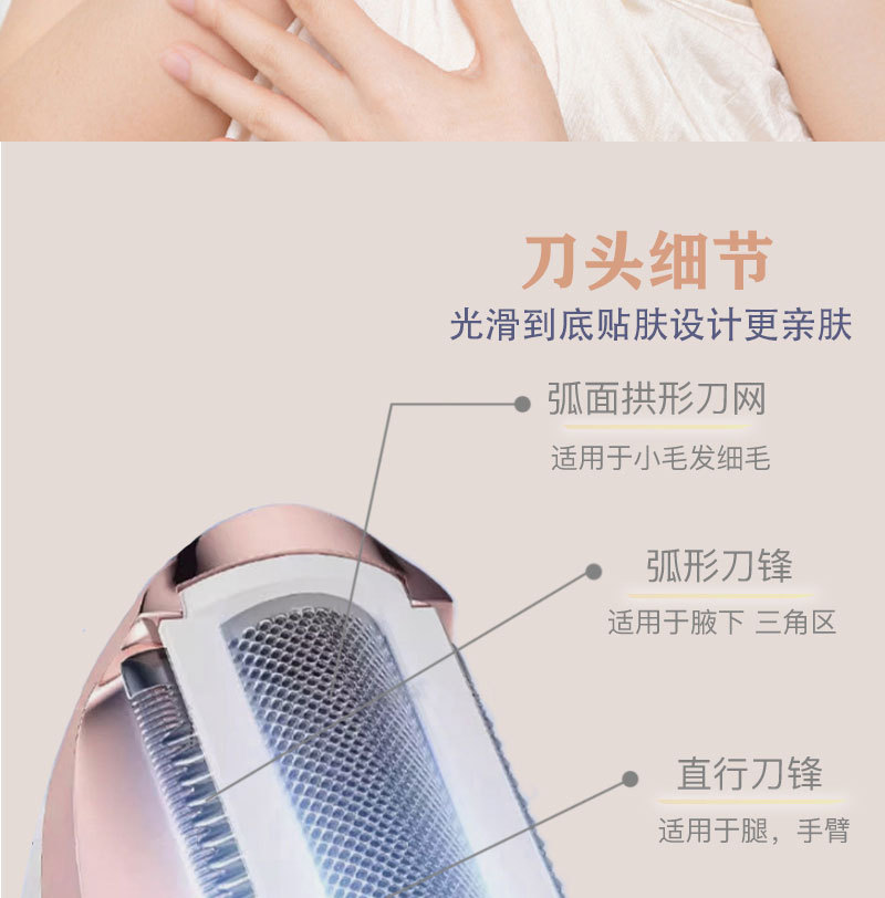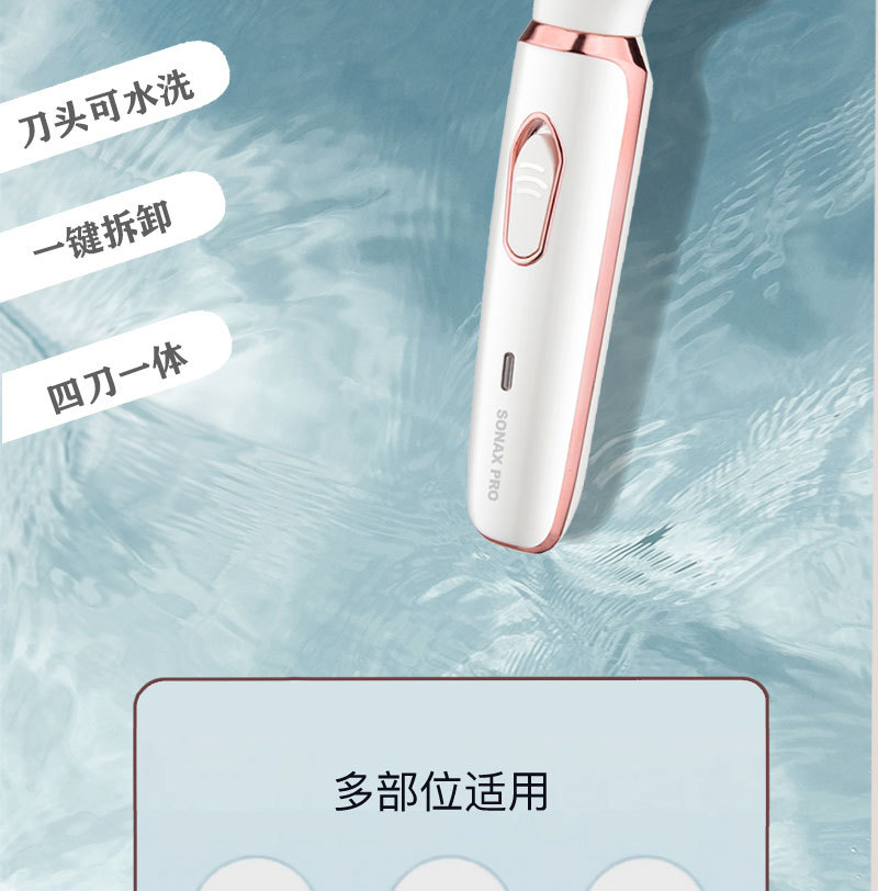 The set includes: 1 x shaver body, 1 x razor blade, 1 x nose hair trimmer, 1 x eyebrow trimming blade, 1 x cleaning brush, 1 x USB charging cable, and 1 x English user manual.