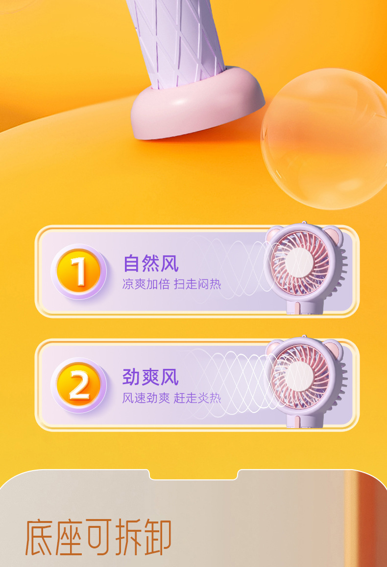 【Product Name】: Ins-style Ice Cream Handheld Fan with Base