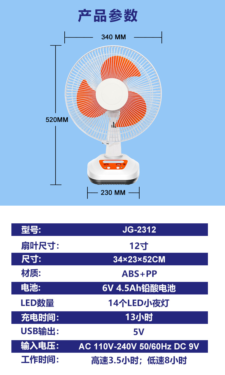 foreign trade exclusively for solar electric fan household 12-inch little fan battery
