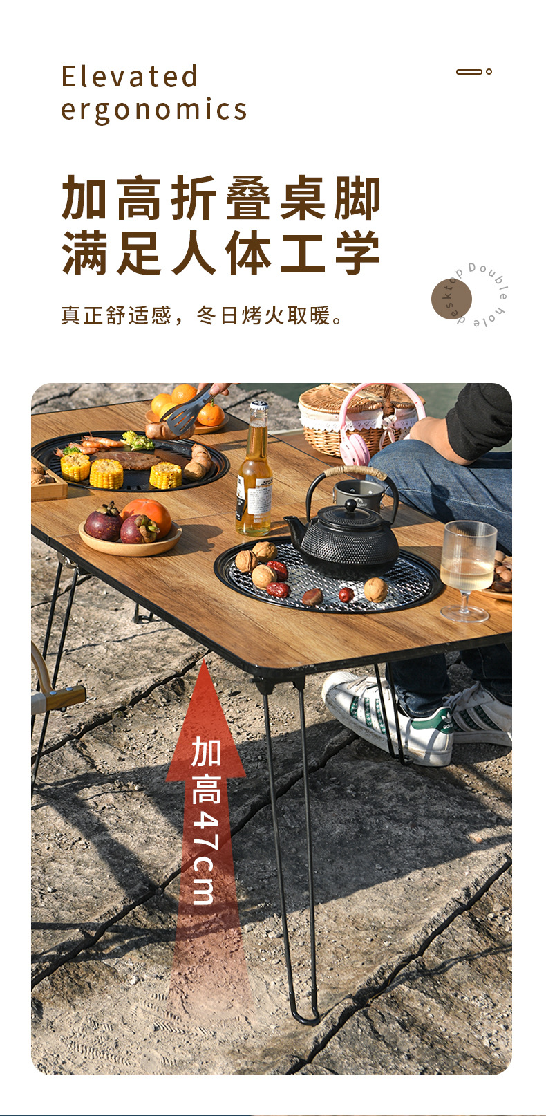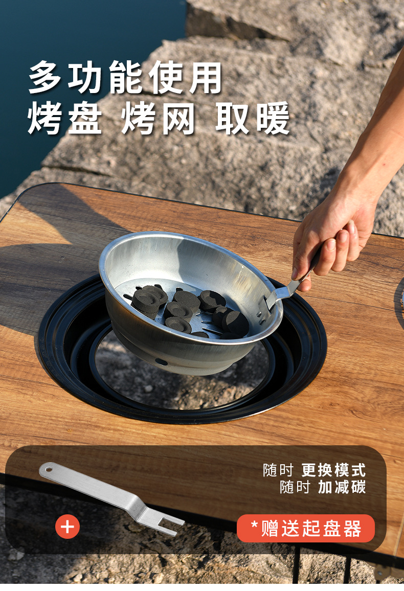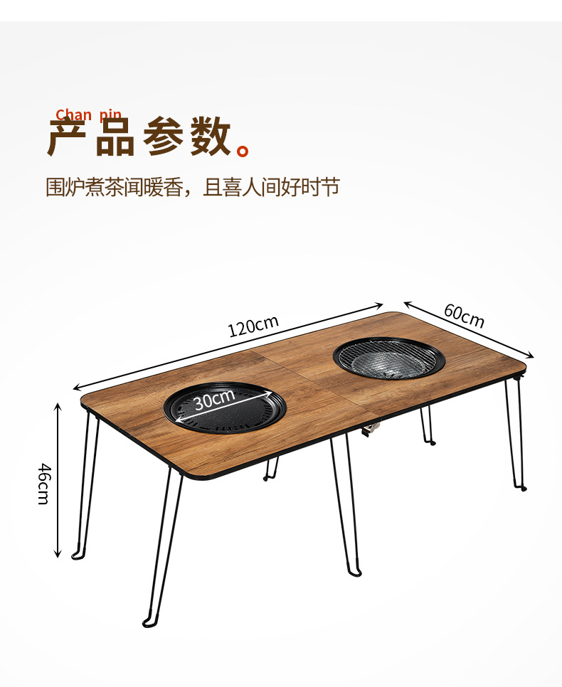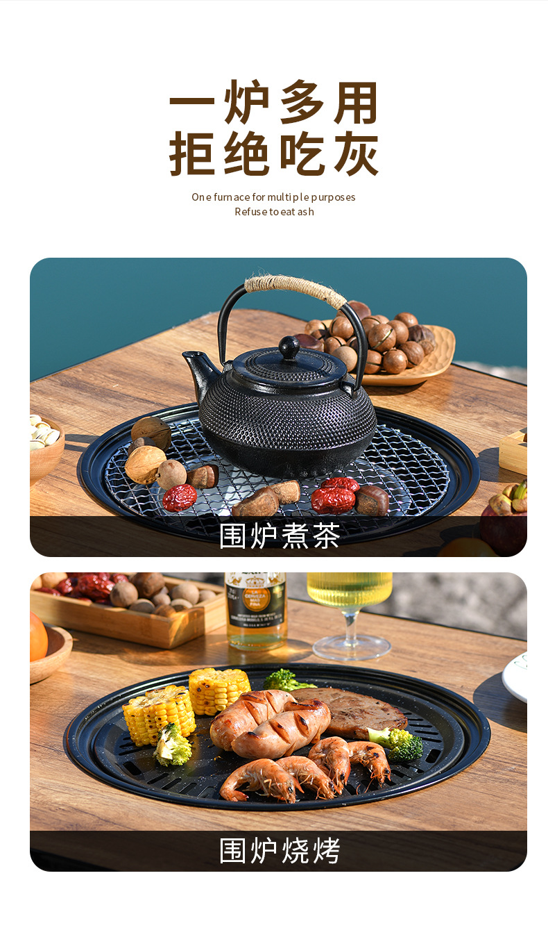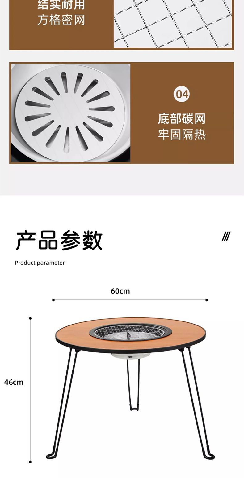 wood grain round table oven + bbq grill + baking tray + buggy bag [60cm]]