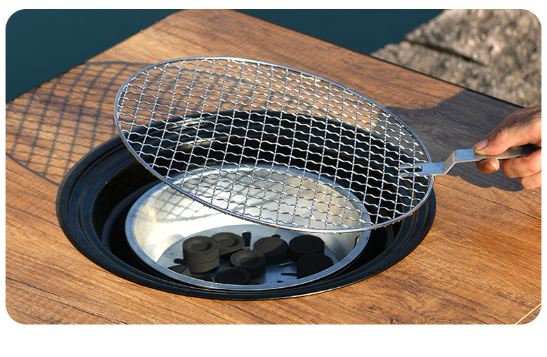 wood grain round table oven + bbq grill [60cm]]