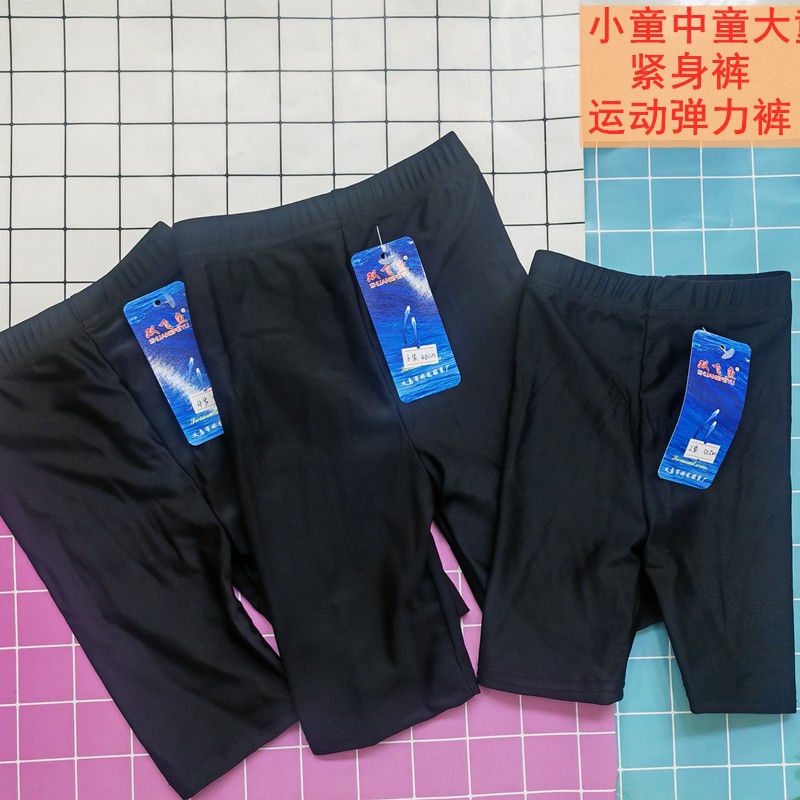 Small, medium, and large children's 5-inch tight pants, made of nylon elastic fabric. Good touch feeling.