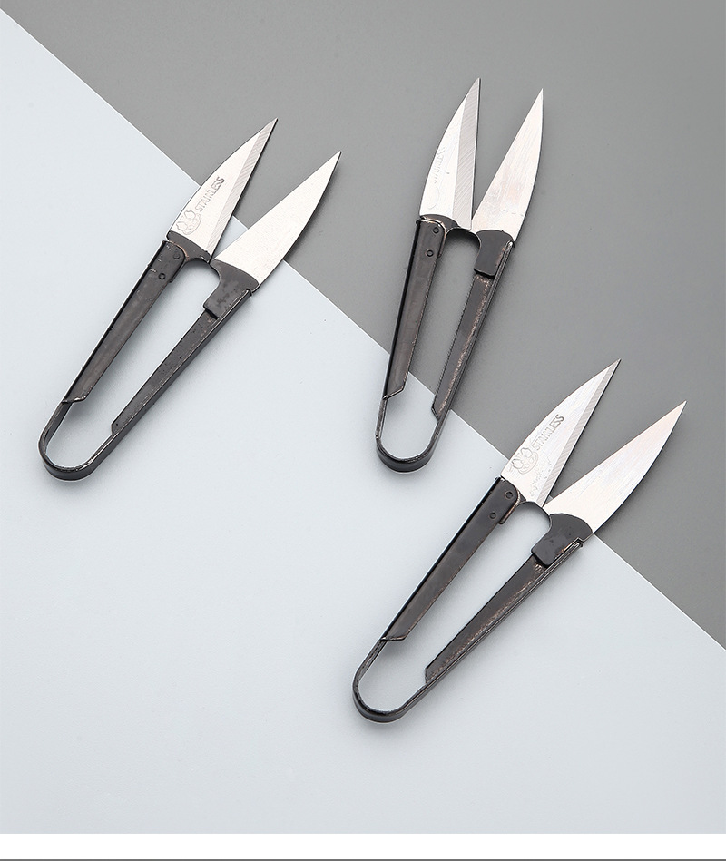 factory direct sales black handle high carbon steel u-shaped scissors household cross stitch thread end scissors spring yarn scissors small scissors