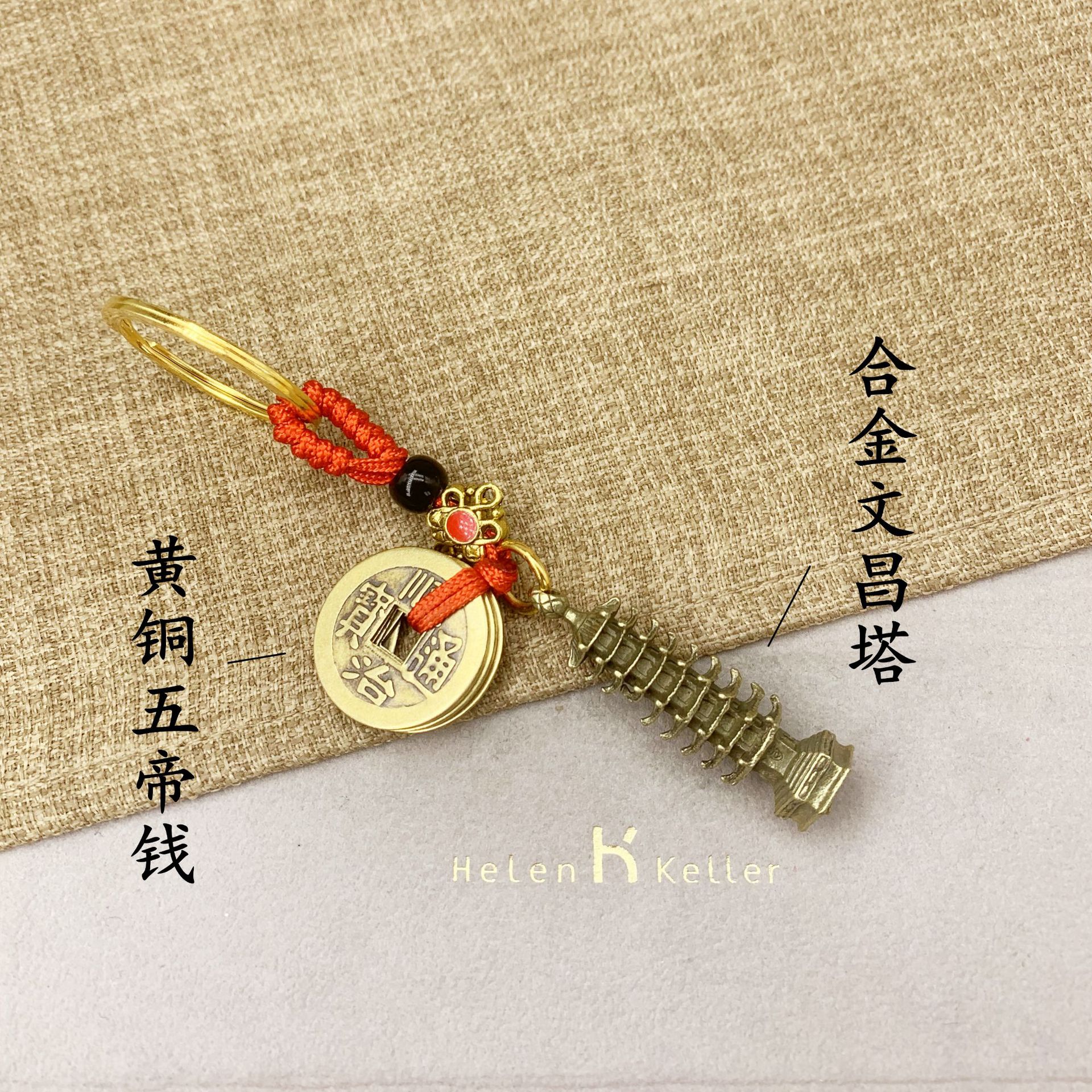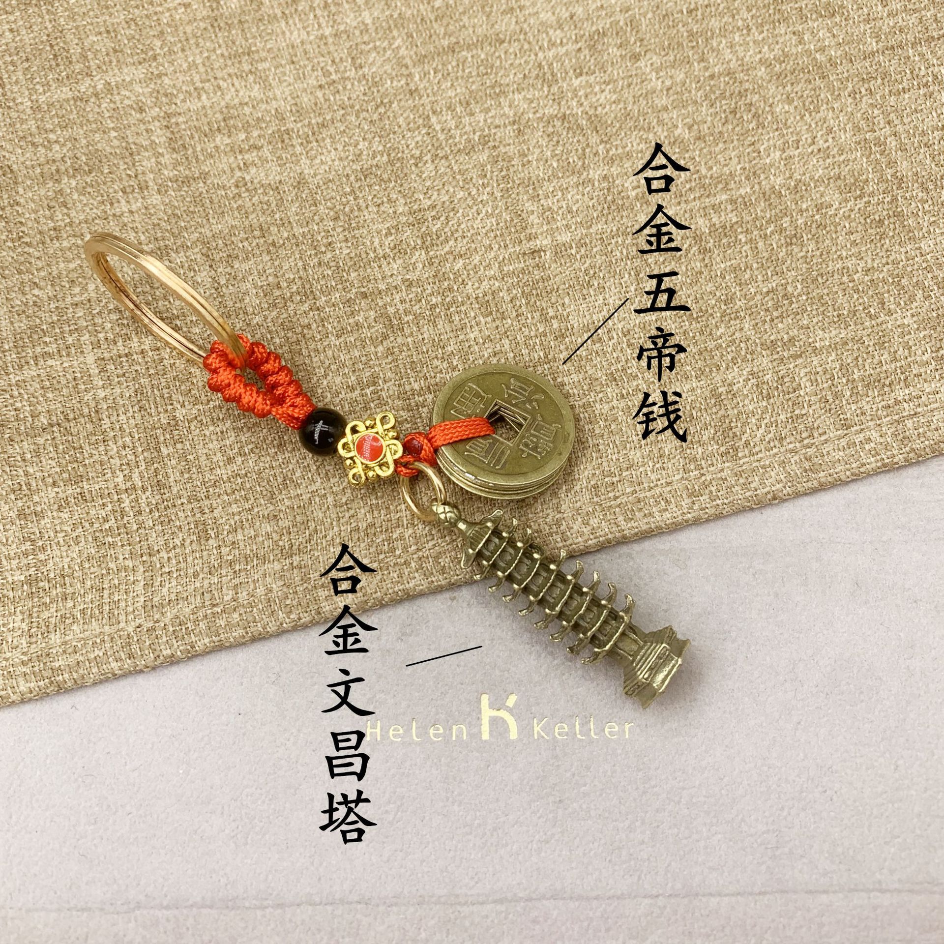 red rope brass qing dynasty five emperors' coins wenchang tower