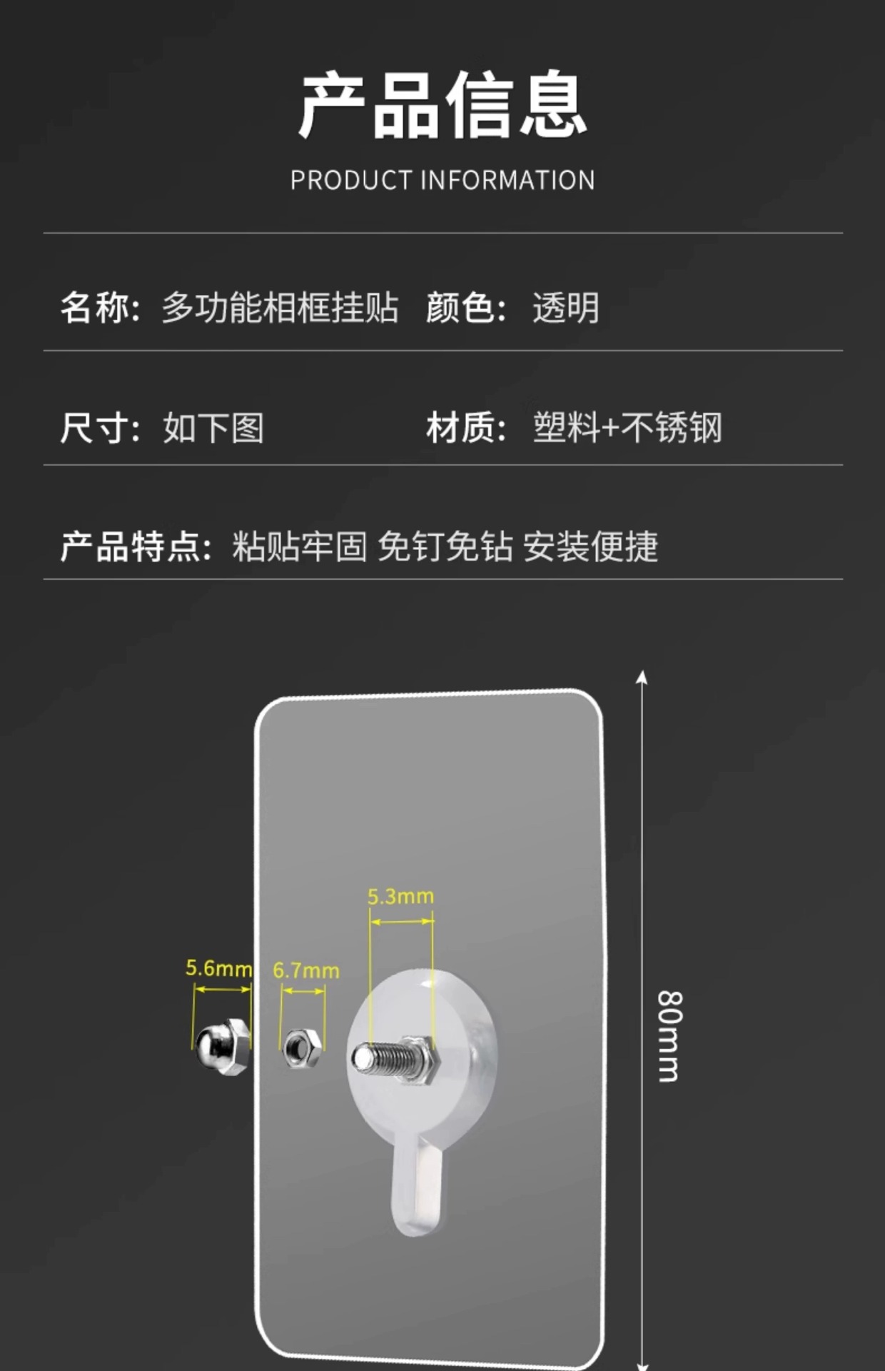 thickened transparent hook 6 * 6cm 0.09