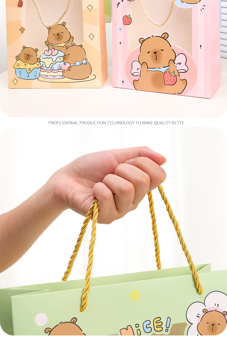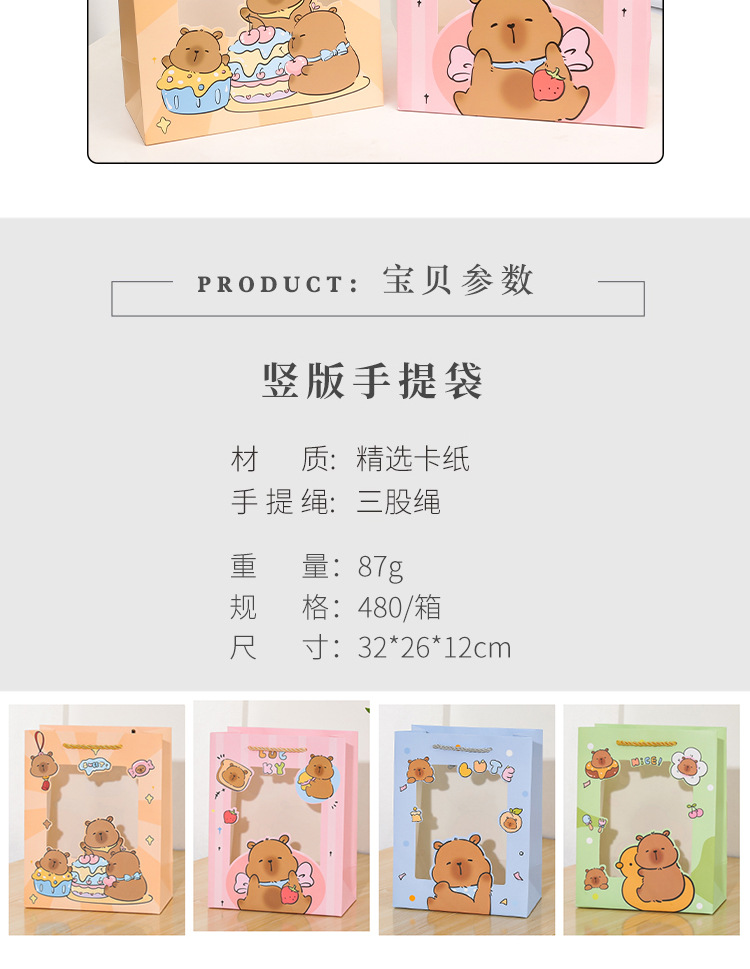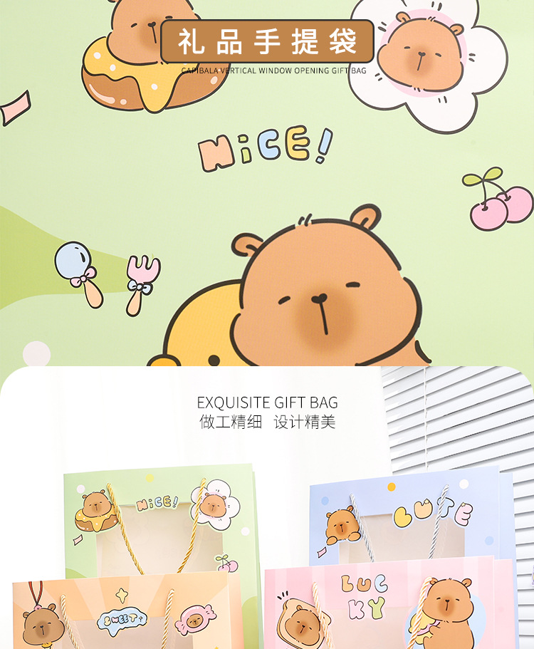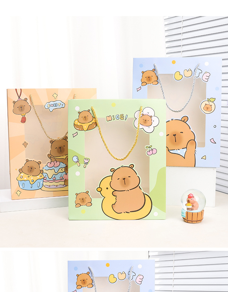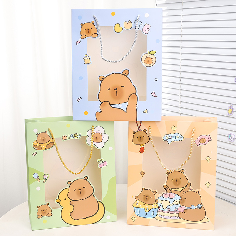 small size vertical version of capabala; window opening gift bag