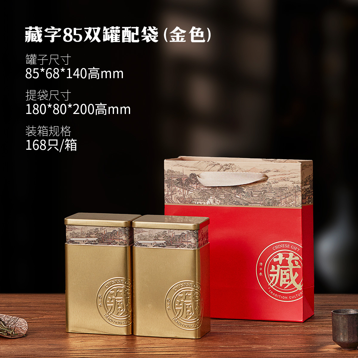 small size gold double cans with bag