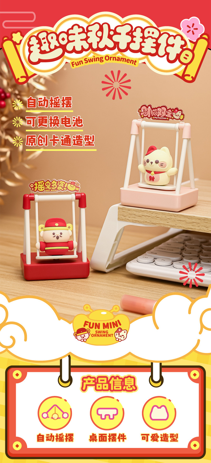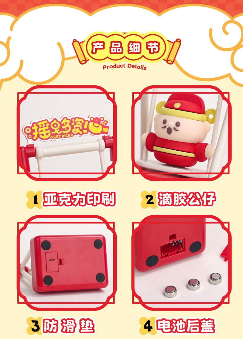 Product model: WS-D01C Fortune Cat/God of Wealth product size: 66x48x99mm Battery type: 3 button cells Product style: Fortune Cat/God of Wealth Battery life: 150 hours Product material: ABS+PMMA+PVC Gross weight of the outer box: 11.25/9.5kg Product gross weight: 80.3/51g Packaging quantity: 120/pcs Outer box size: 49x37.5x54CM Product patent number: 202430361652.2 Color box size: 92x50x125mm