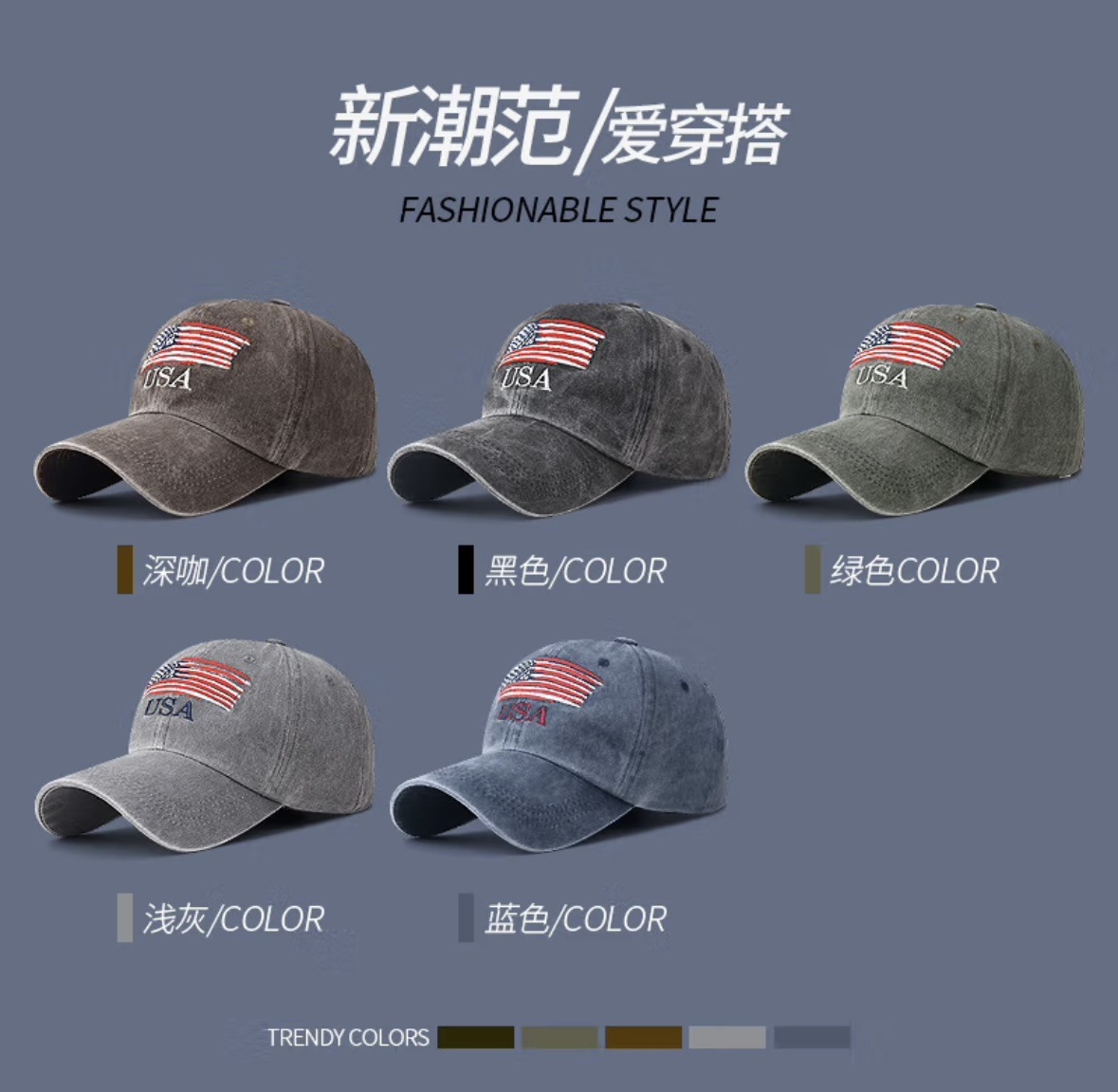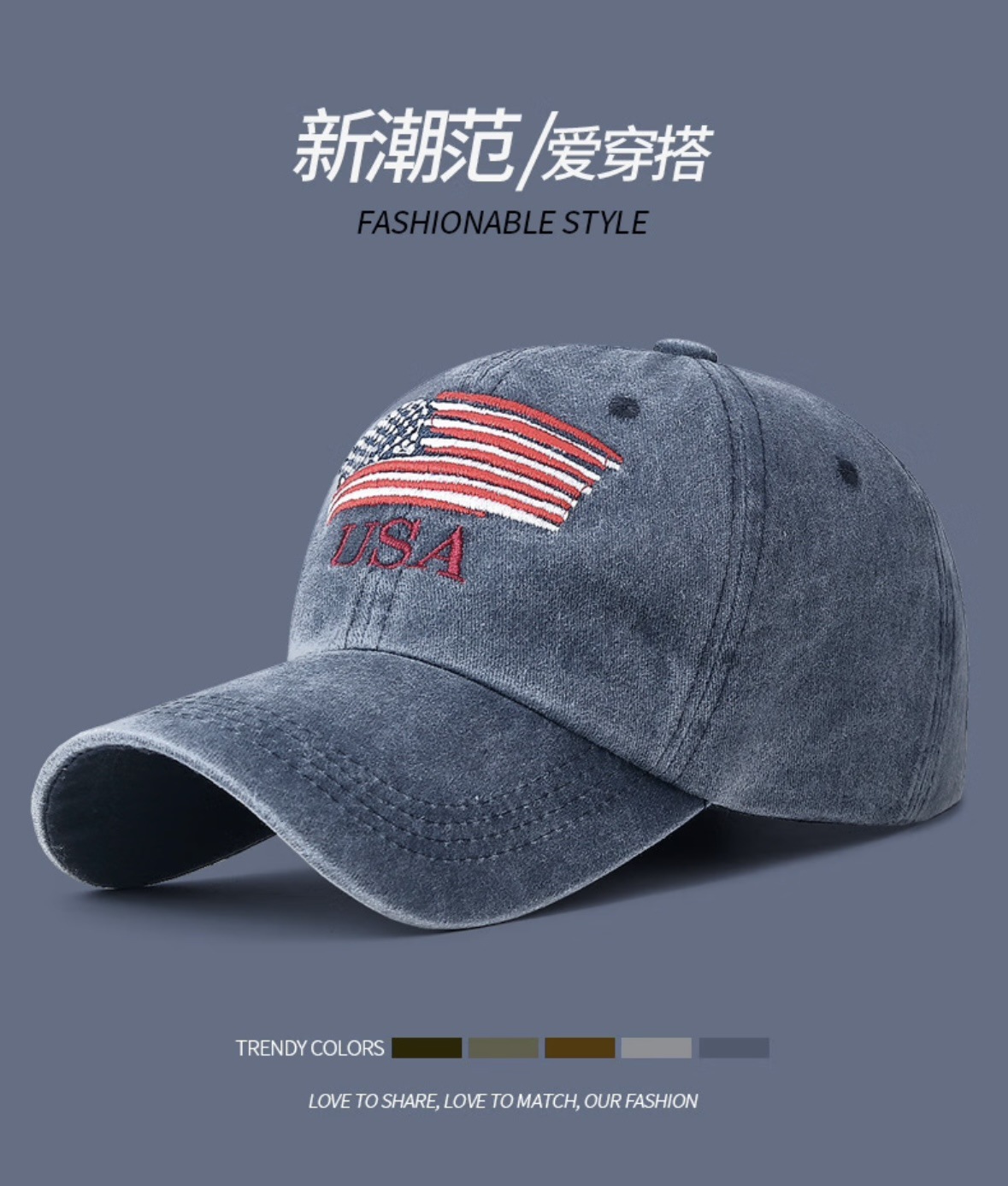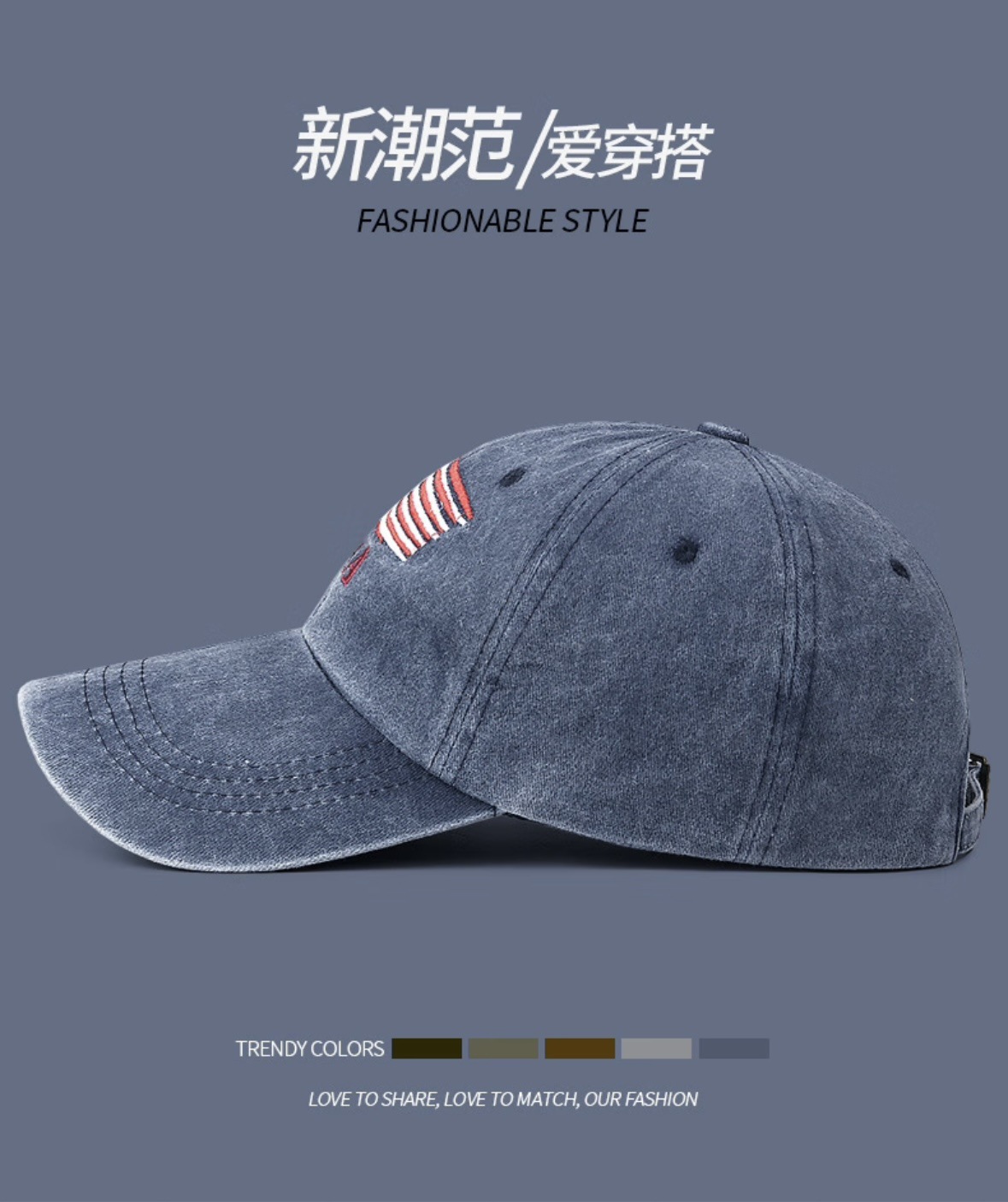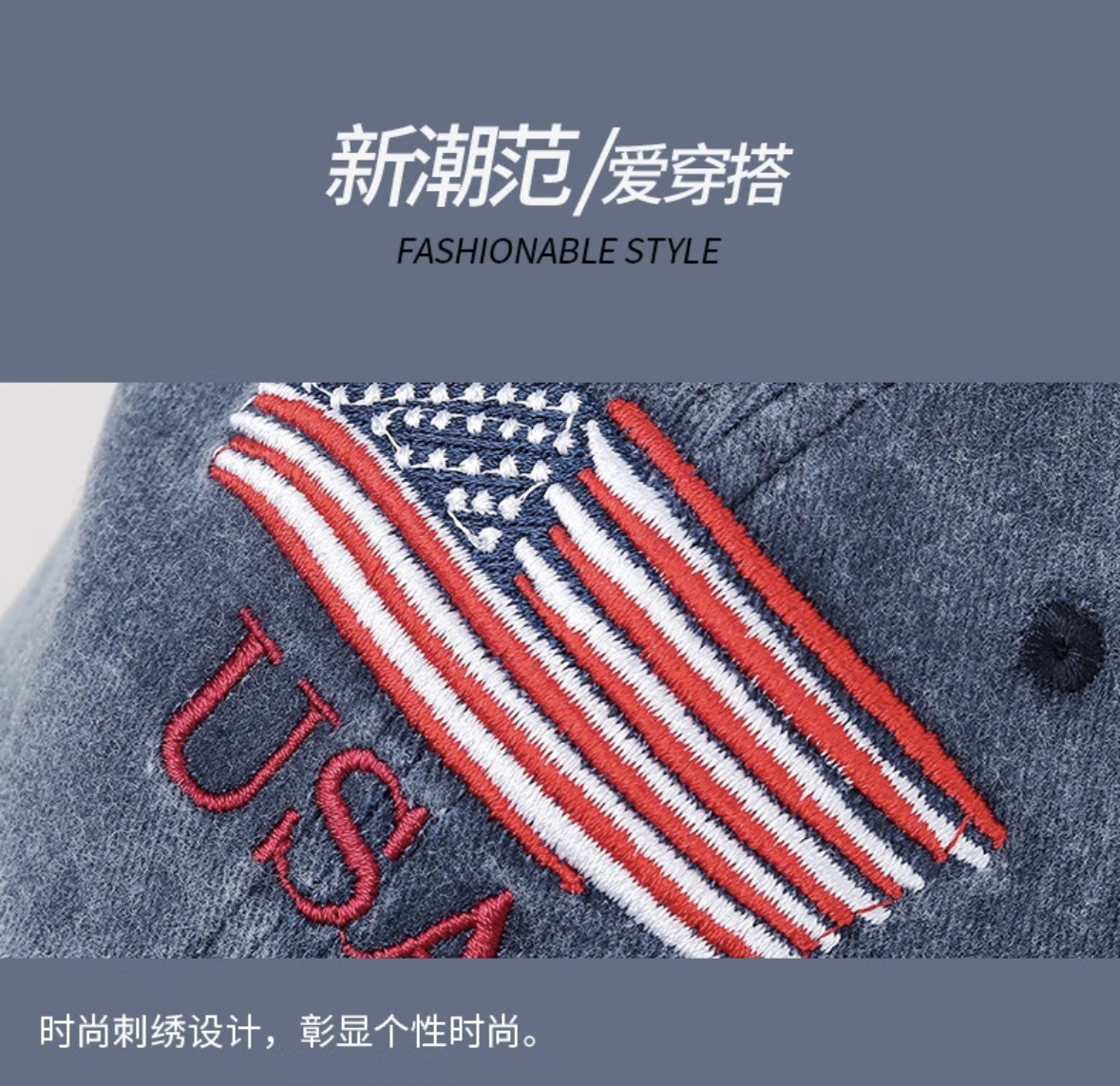 New Waterwash Cotton Baseball Cap with Distressed Embroidered Letters, Ducky-style Brim, Outdoor Men's and Women's Sunshade Universal Baseball Cap