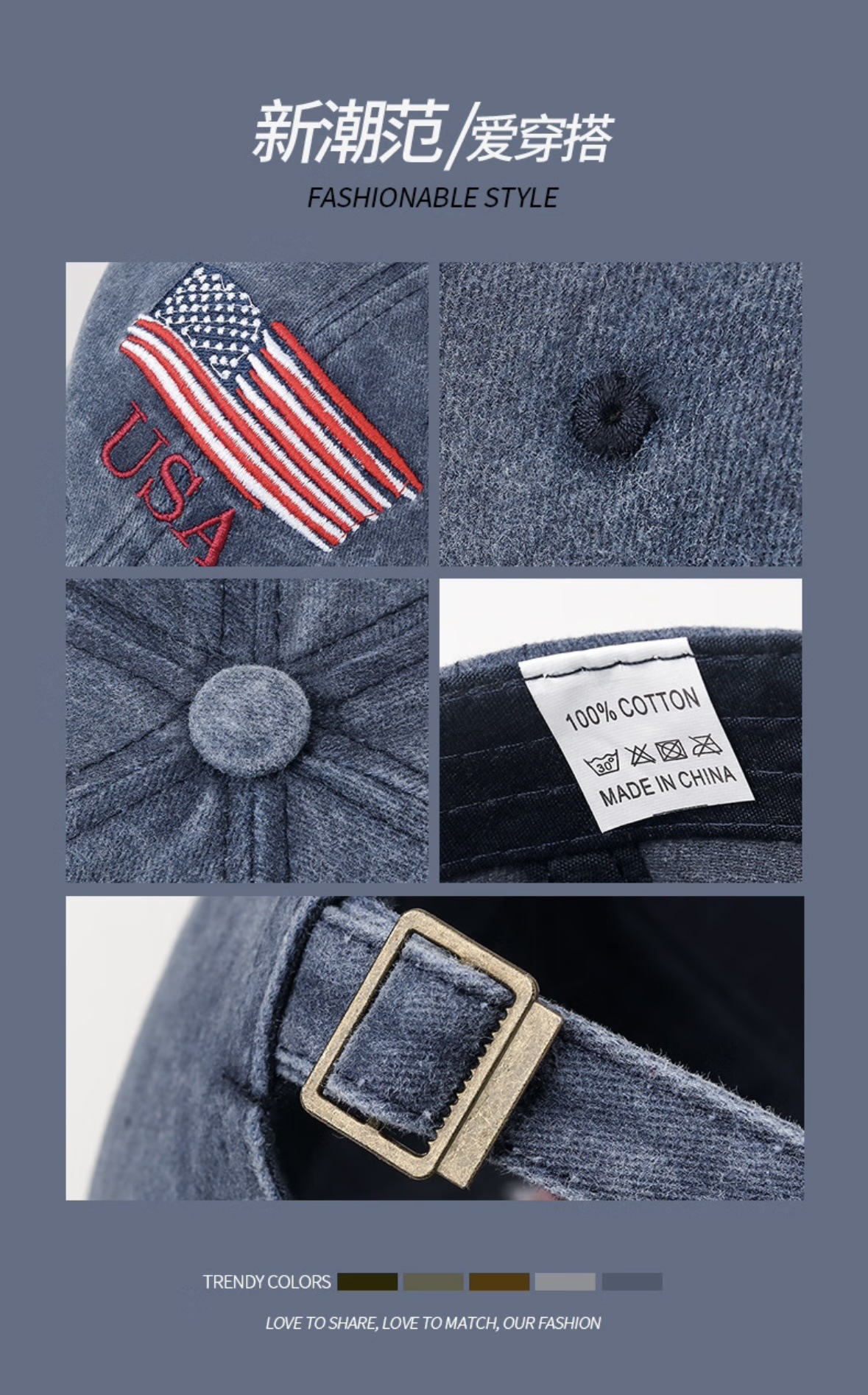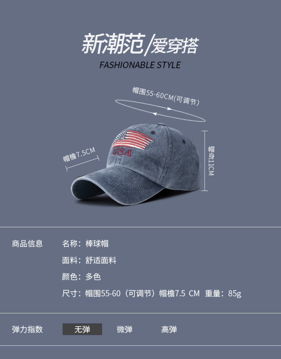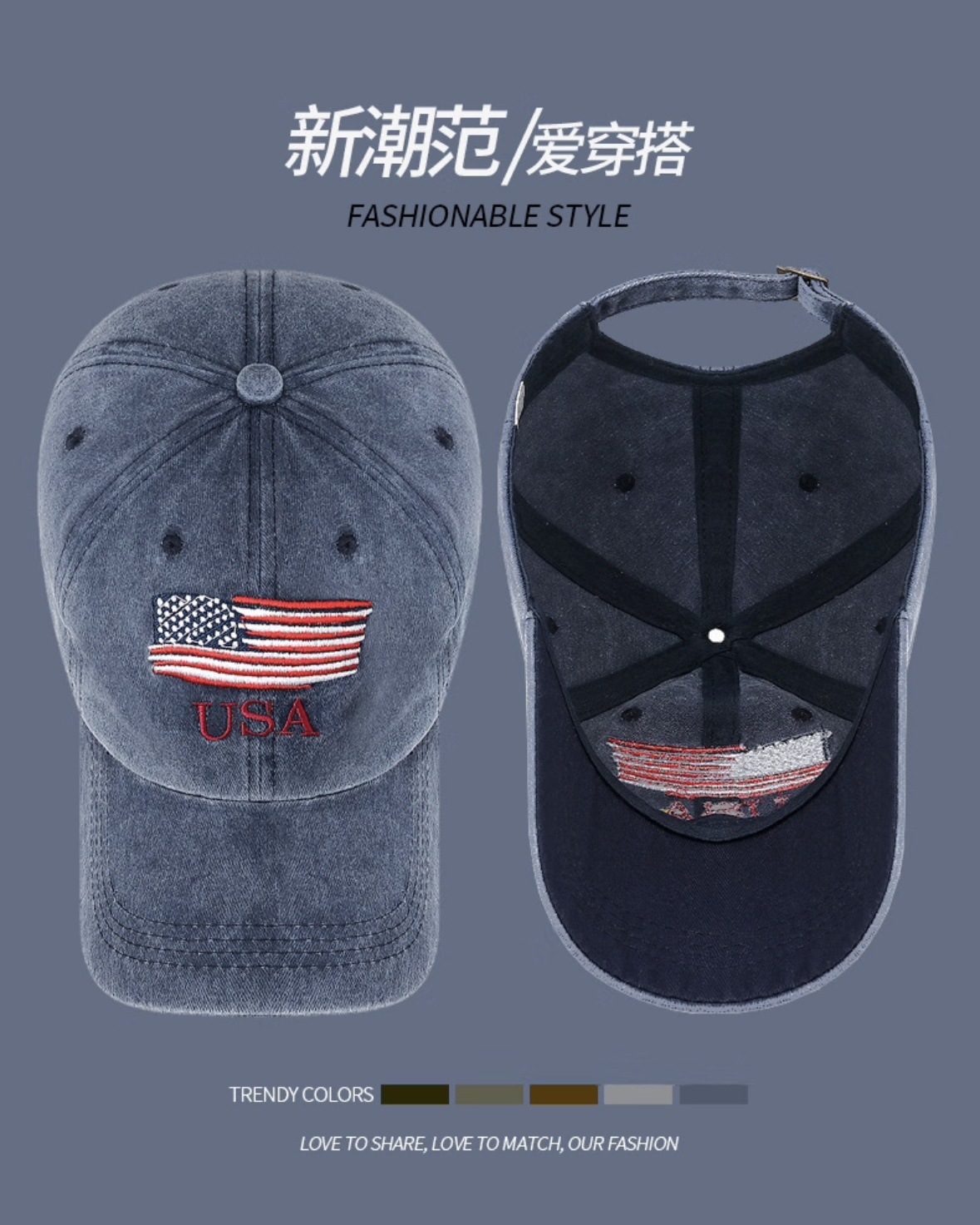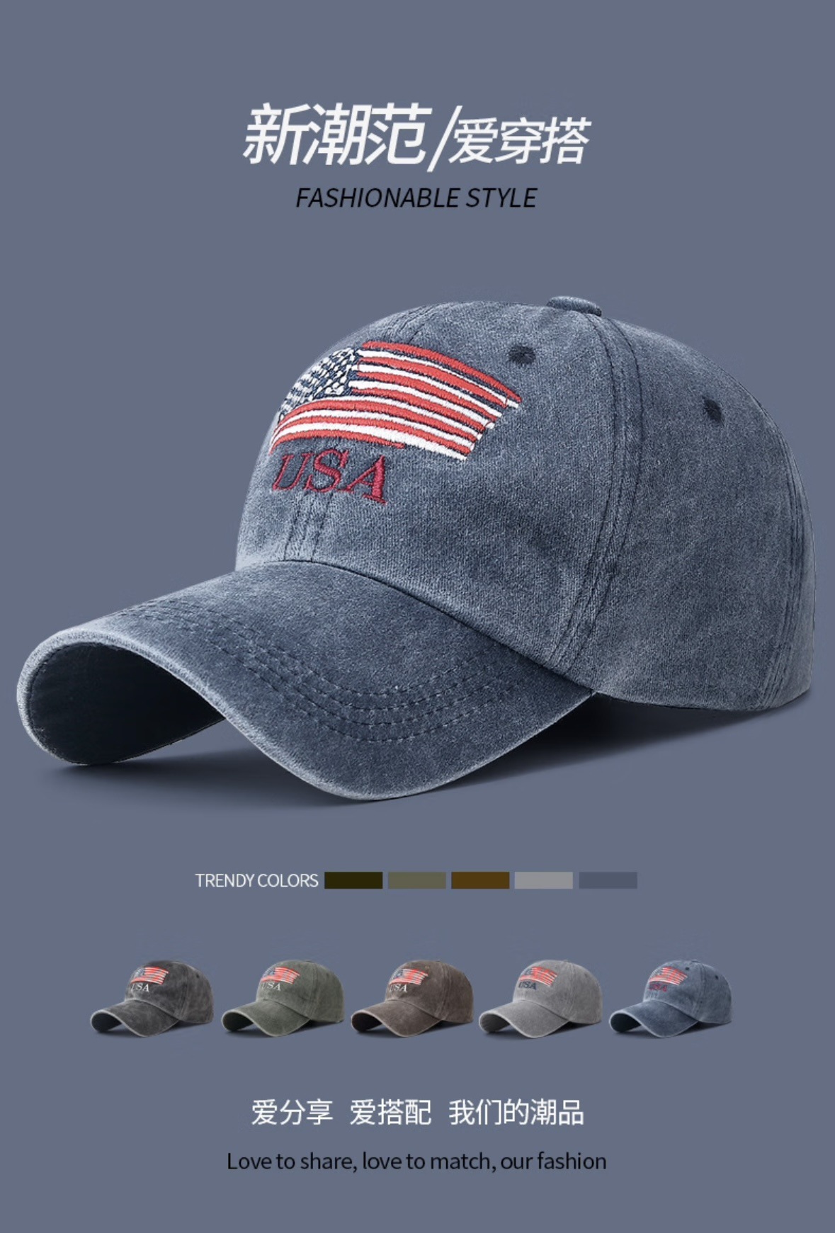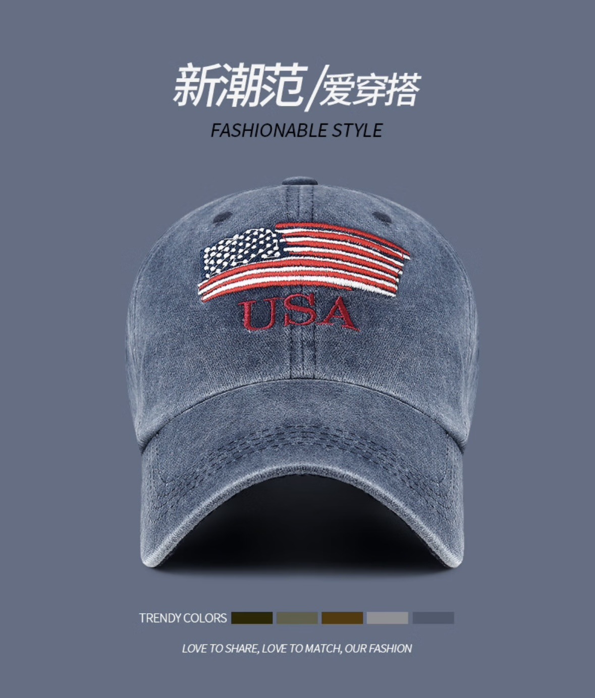 New Waterwash Cotton Baseball Cap with Distressed Embroidered Letters, Ducky-style Brim, Outdoor Men's and Women's Sunshade Universal Baseball Cap