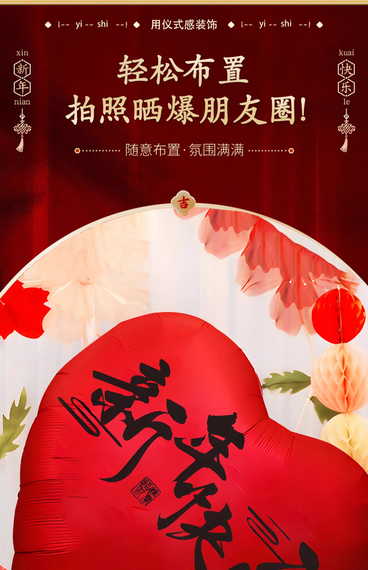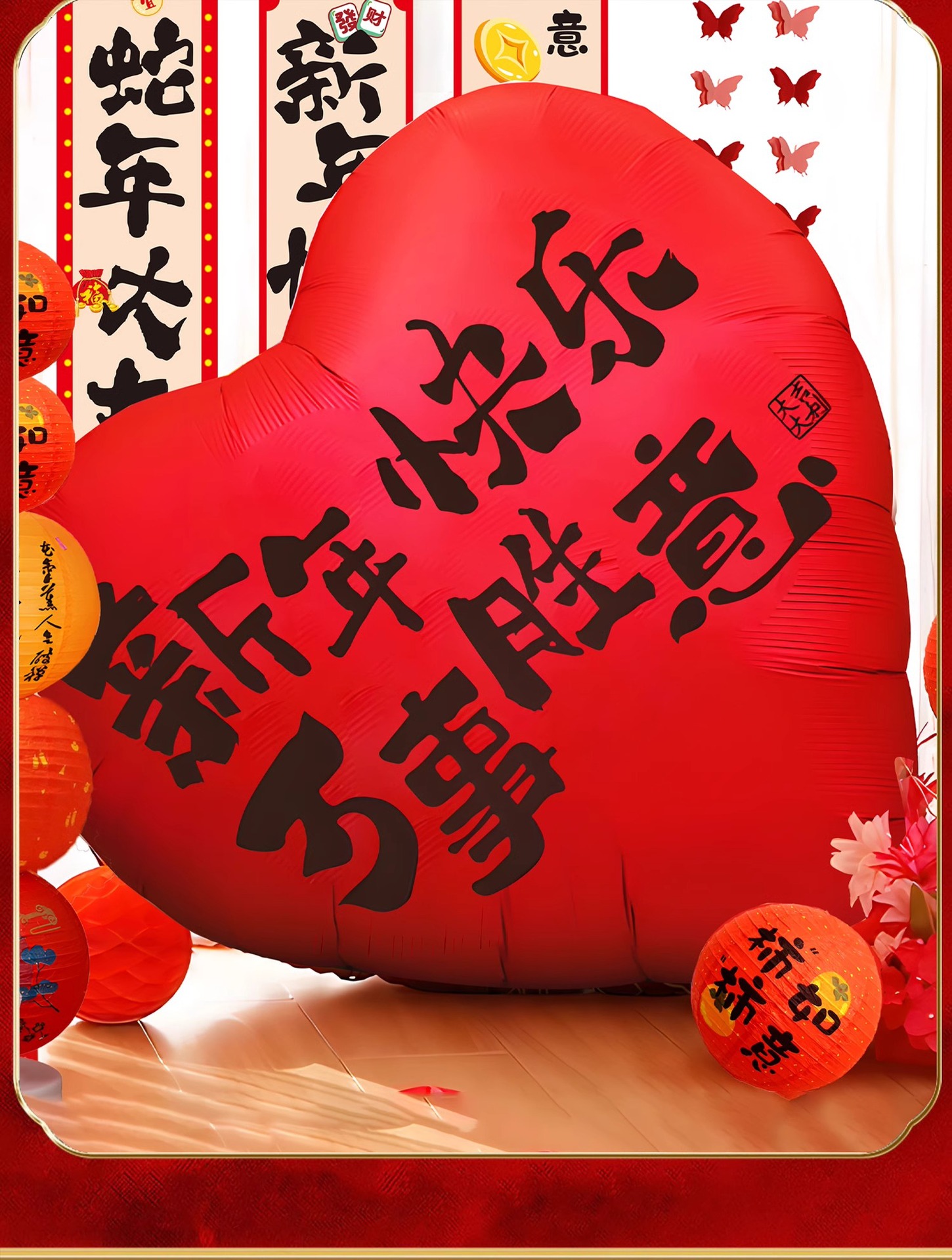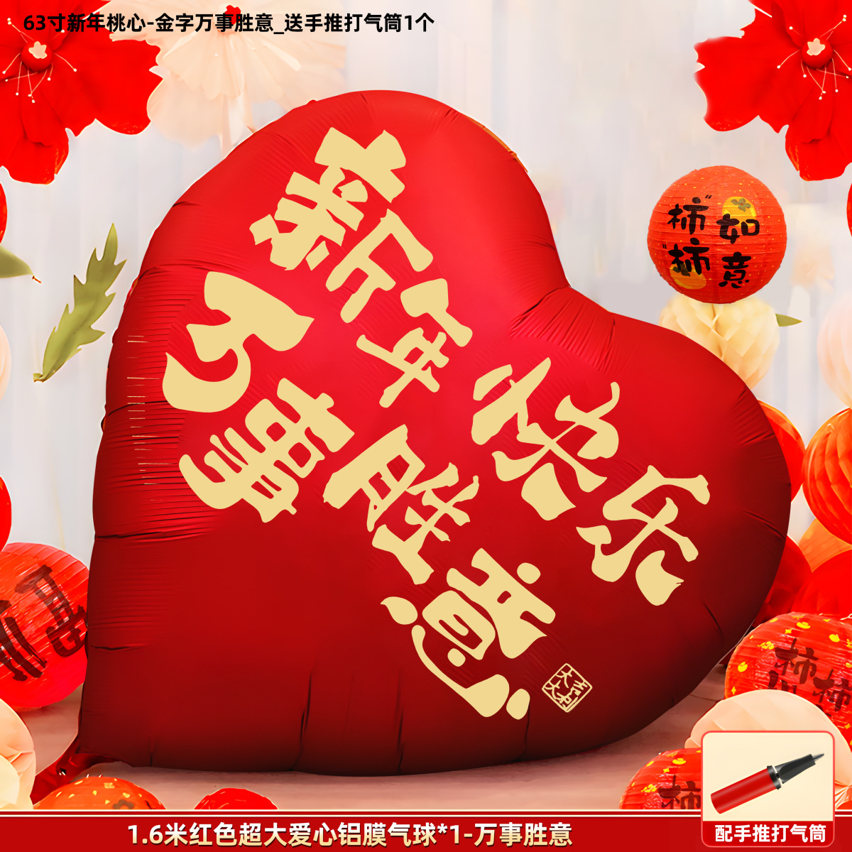 black word-63-inch super large love aluminum balloon + hand push tire pump [happy new year]]