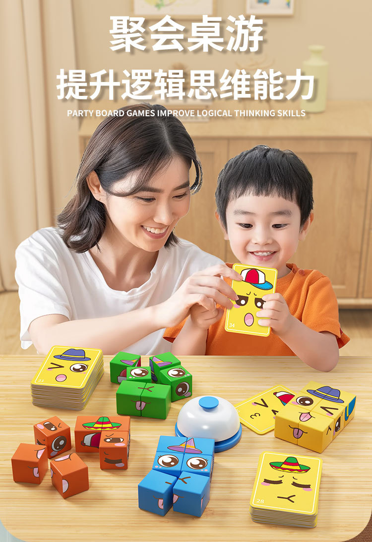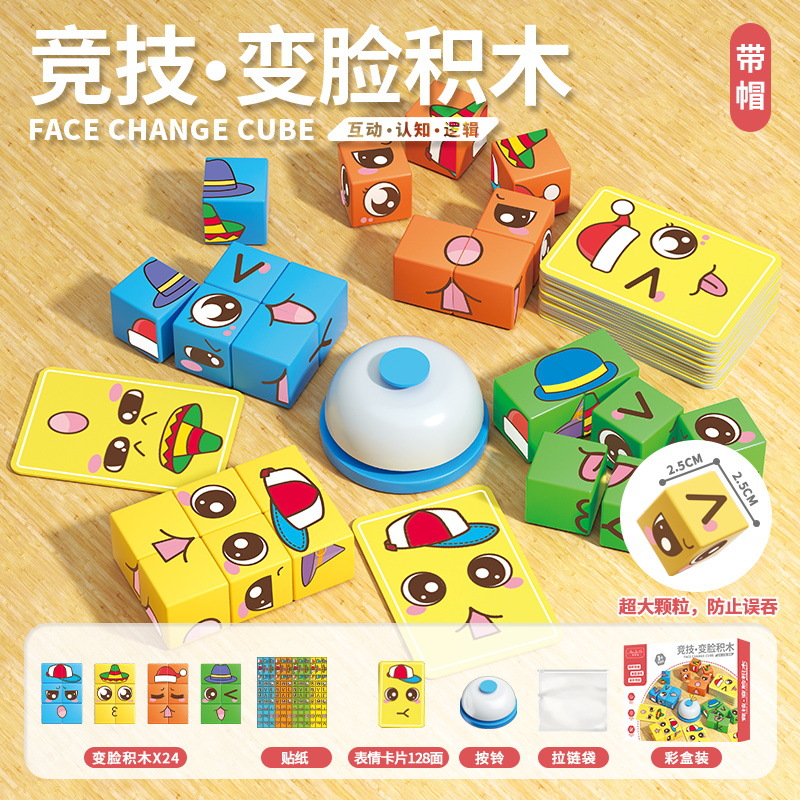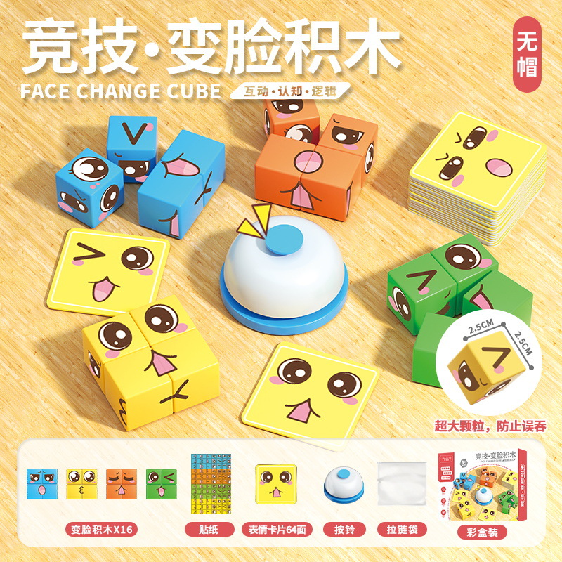 competitive face-changing building blocks * 16pcs +32 sheets * 2-sided cards +1 bell [color box packaging]]