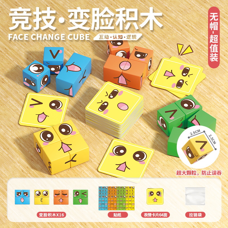 competitive face-changing building blocks * 16pcs +32 pieces * 2-sided cards [kraft box]]