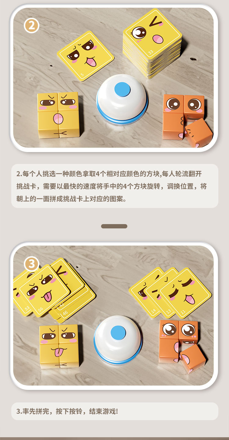 competitive face-changing building blocks * 24pcs +64 pieces * 2-sided cards +1 bell [color box packaging]]