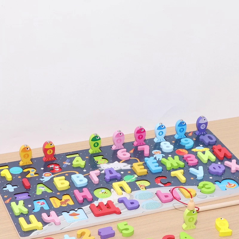 children's early education russian alphabet fishing building blocks puzzle space matching number board thinking training hands-on brain-benefiting toys