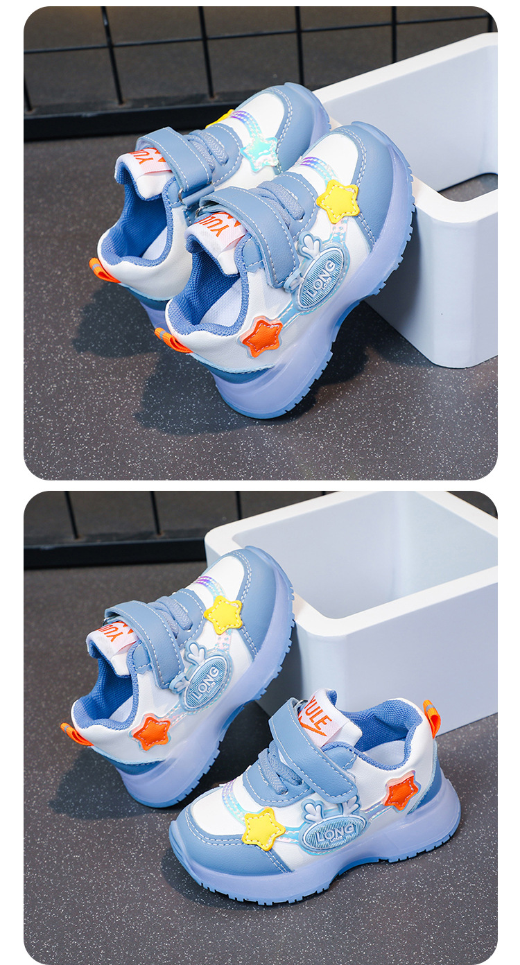 2024 spring and autumn new boys' sneaker leather surface light baby children's shoes girls' shoes waterproof running shoes