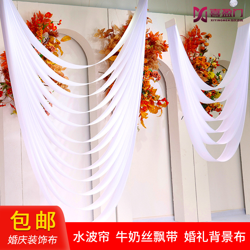 milky white four-layer wave curtain customization