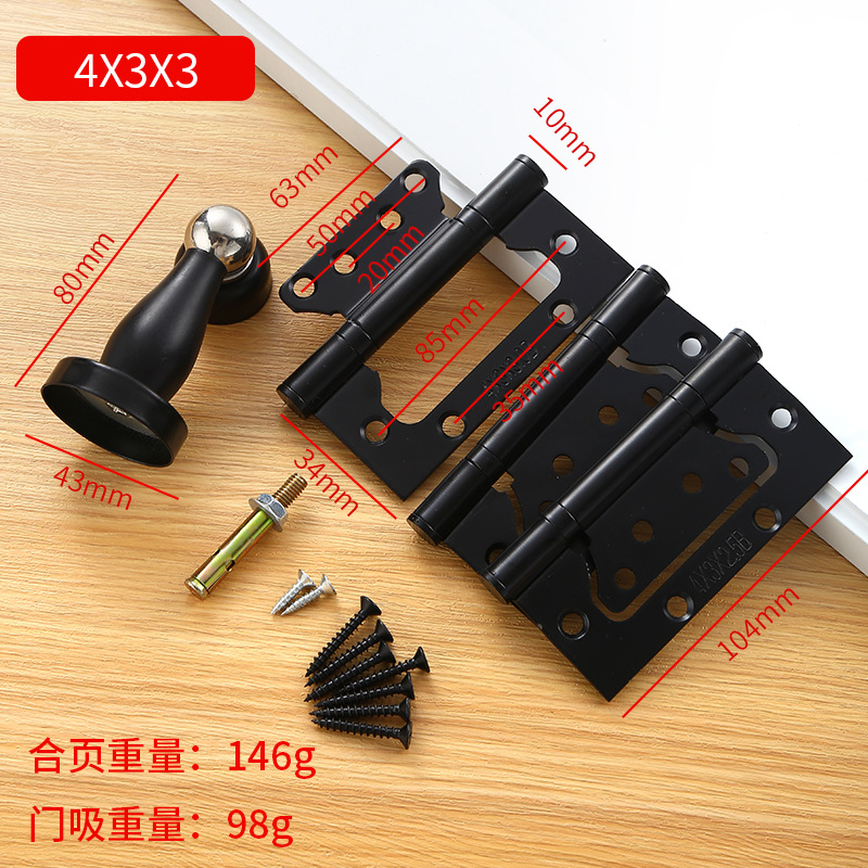 | door lock essential 4*3*3 manganese steel three-piece hinge + door stopper (black) | CN¥ 8.32 | 999999 set available |