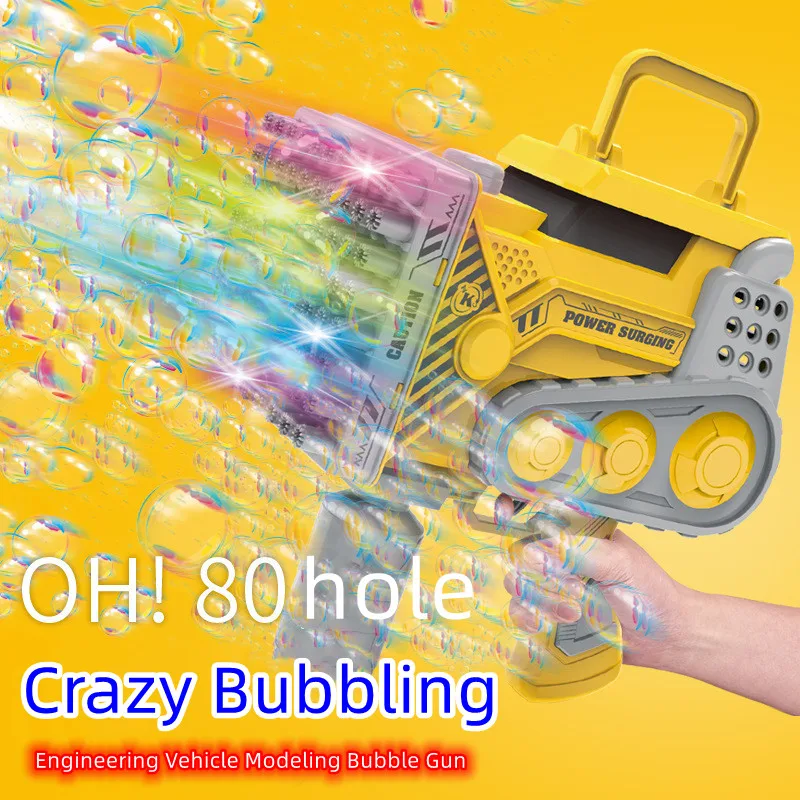 80 Holes Engineering Car Bubbles Maker Rechargeable Bubble Gun POP Light Music Children's Outdoor Bubble Blowing Machine Toys