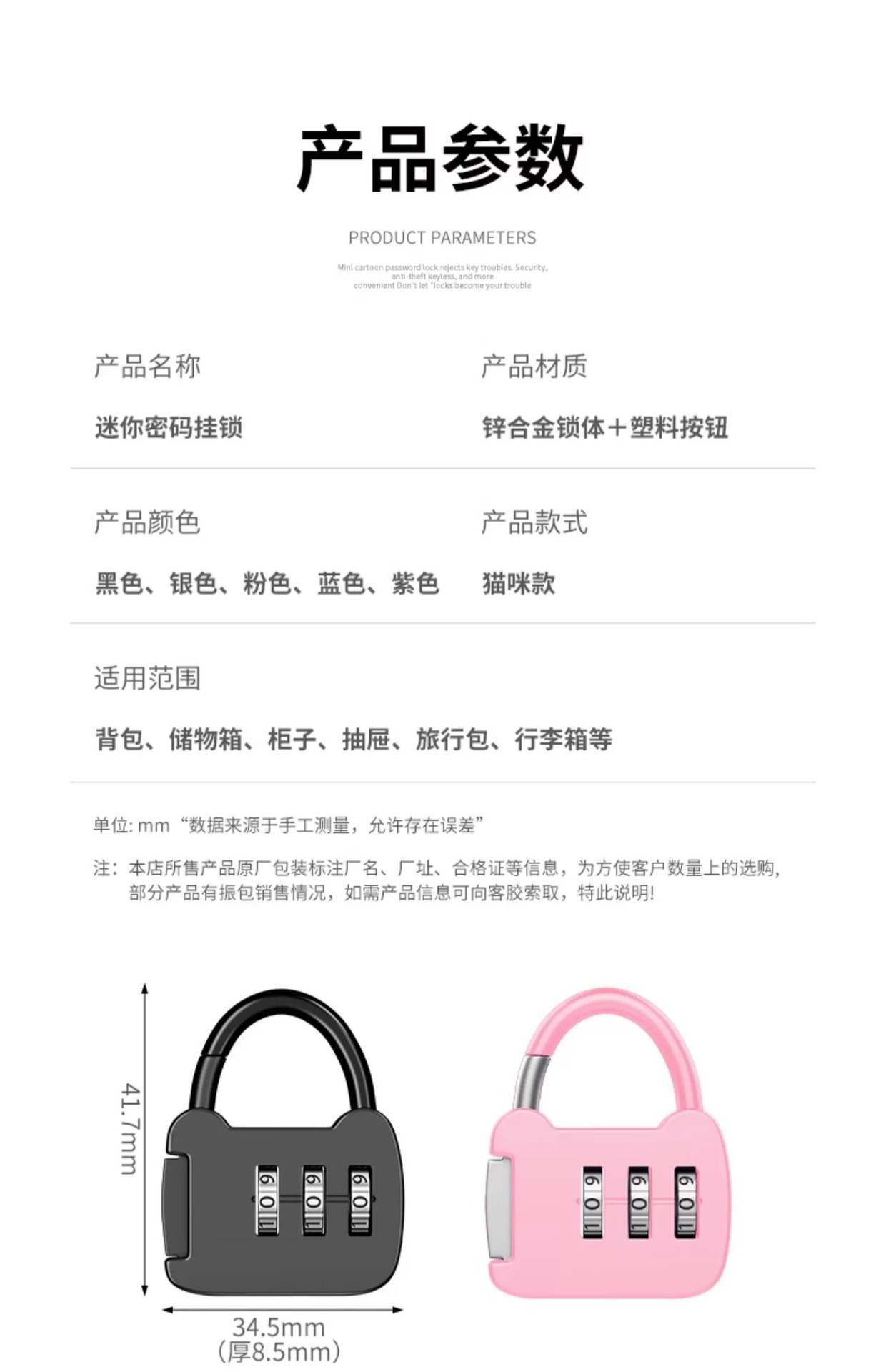 [cat password lock] pink one pack