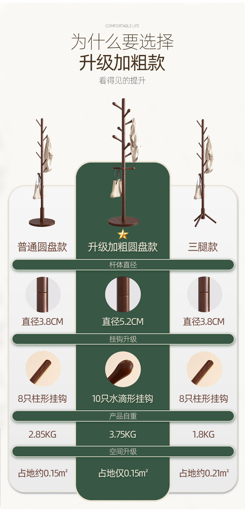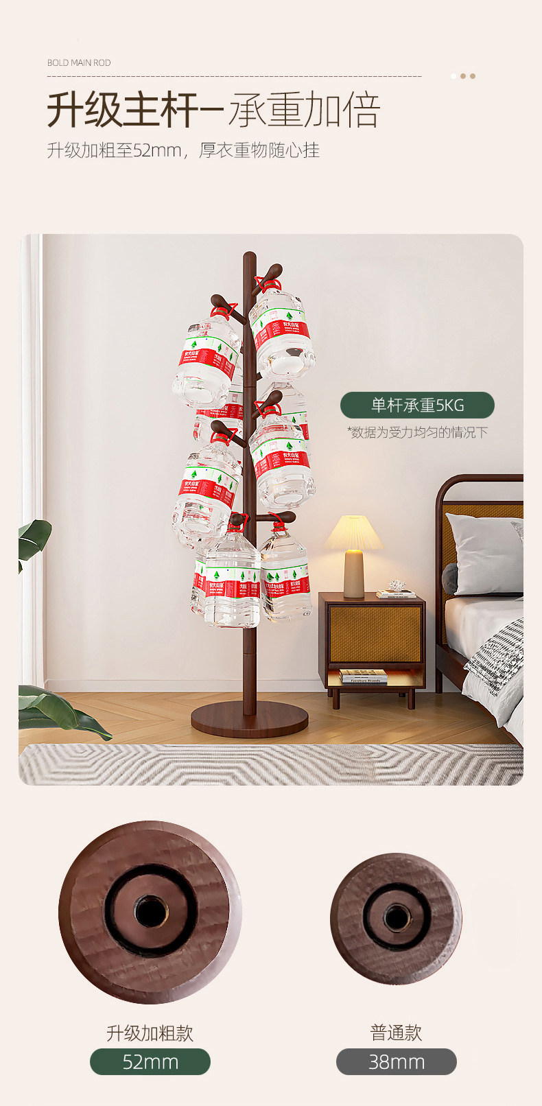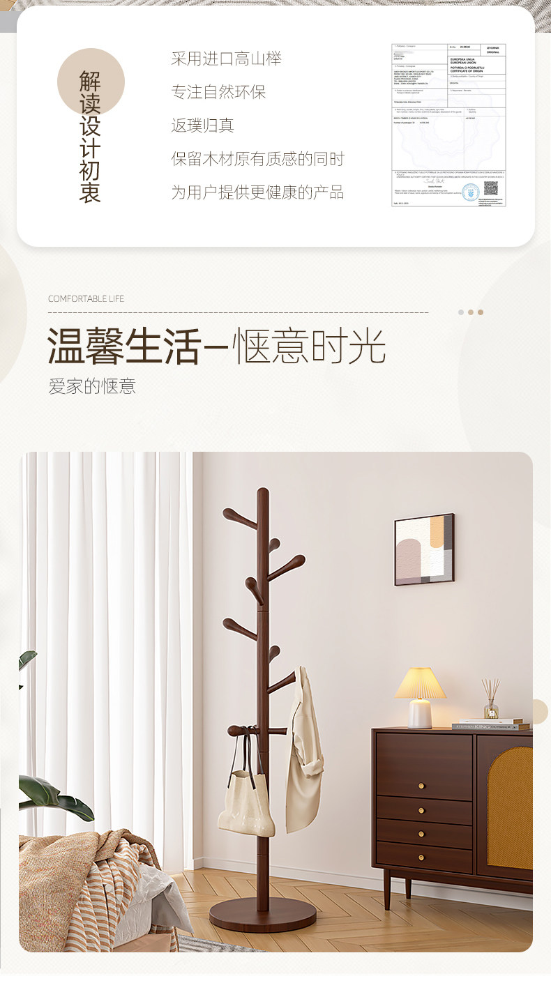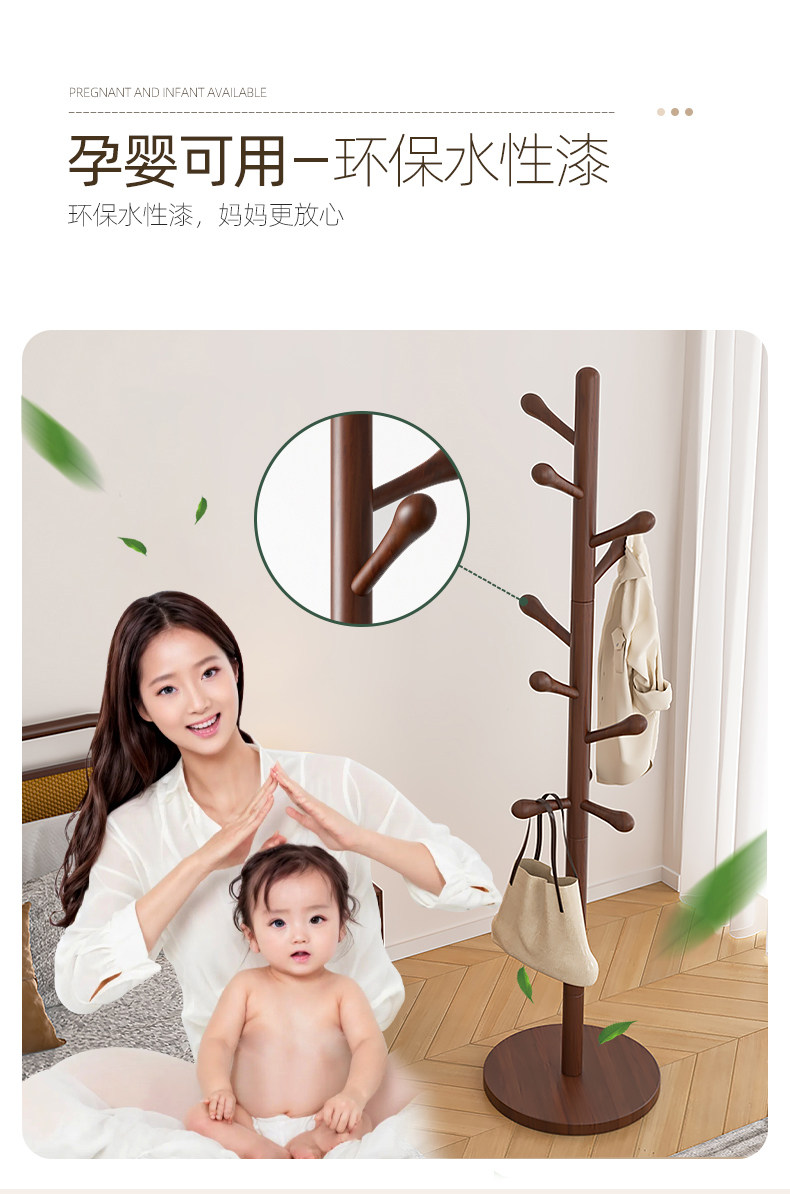 [luxury beech solid wood] wood color three legs-8 hooks
