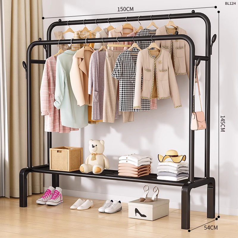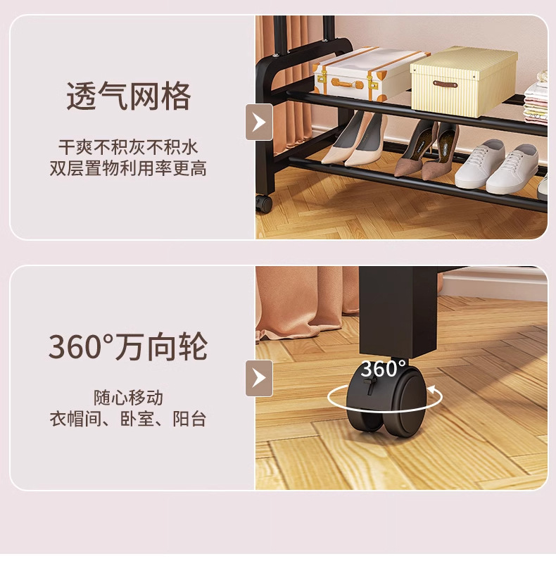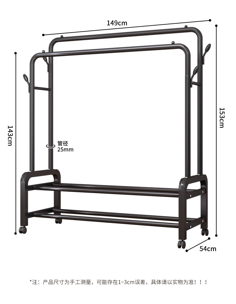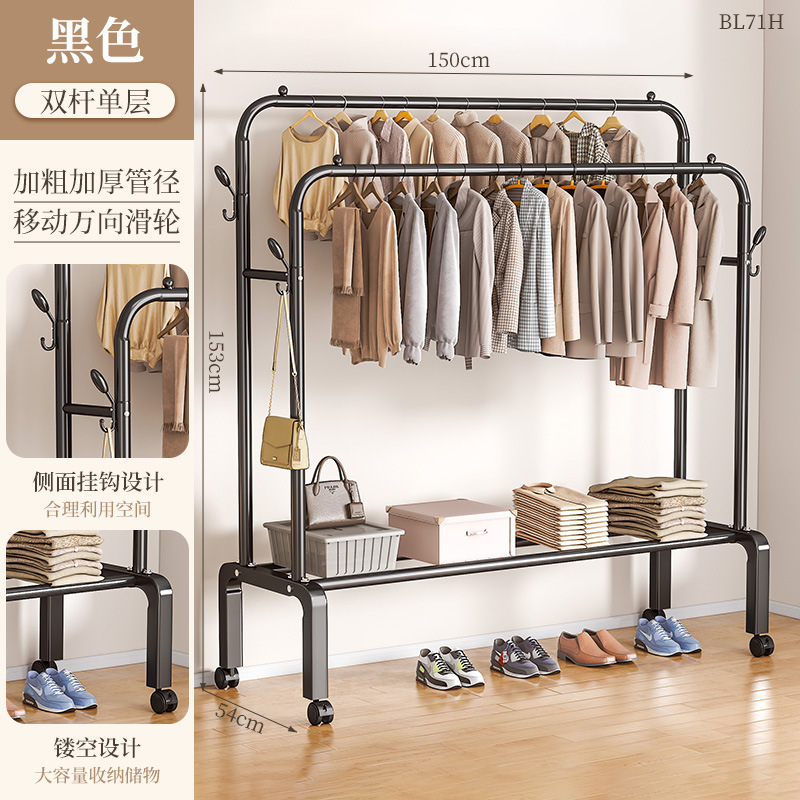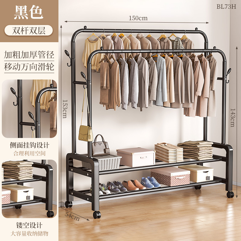 [double rod double layer 150 black]-four hooks + universal wheel special thick type