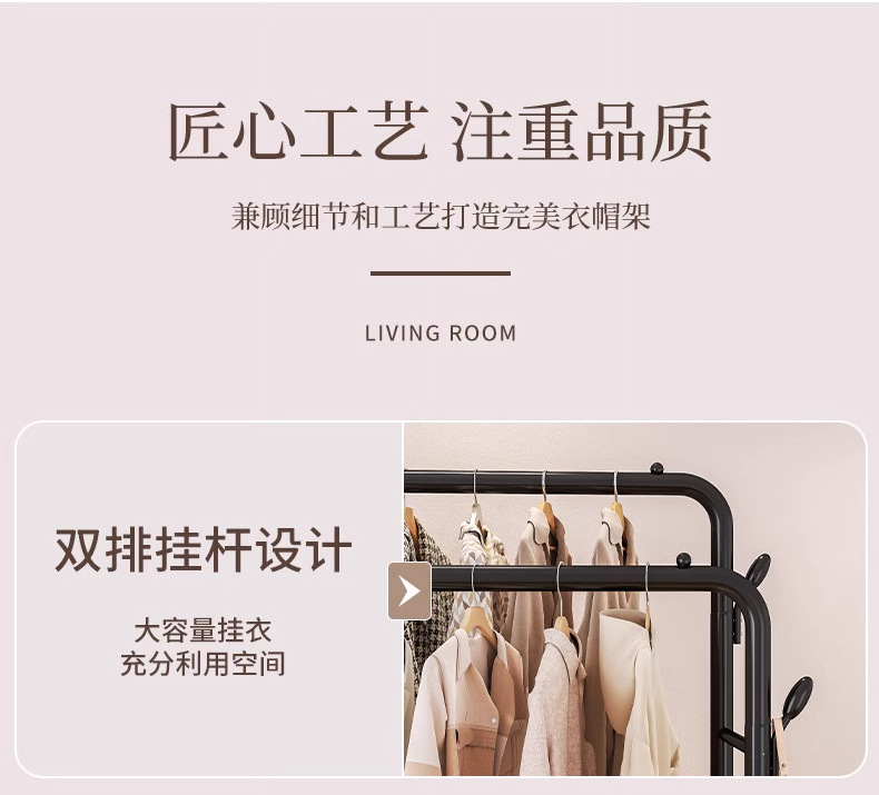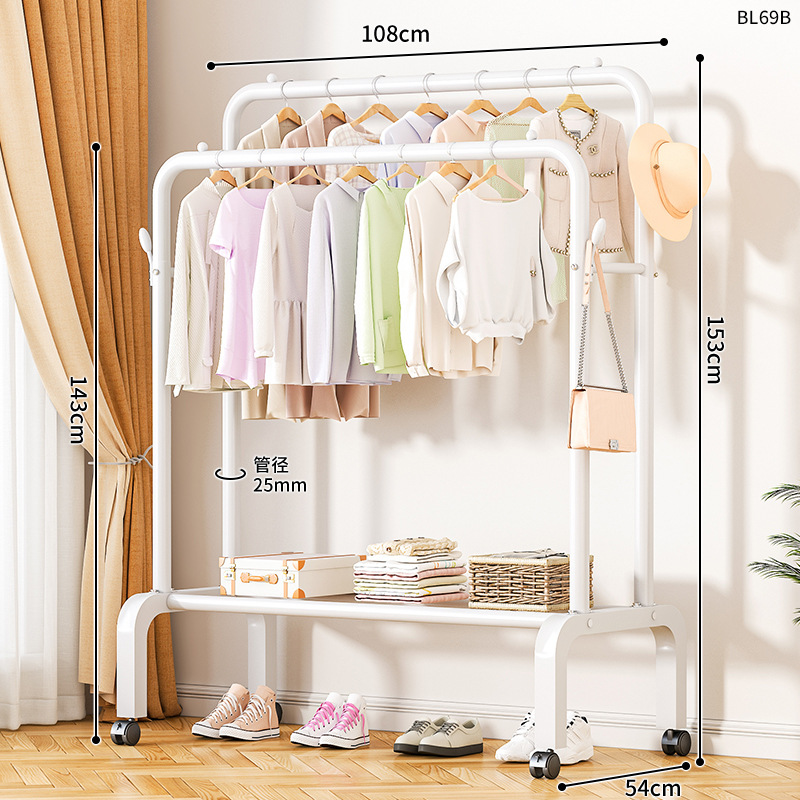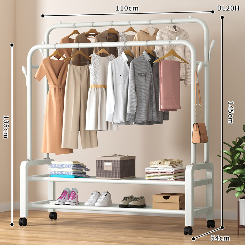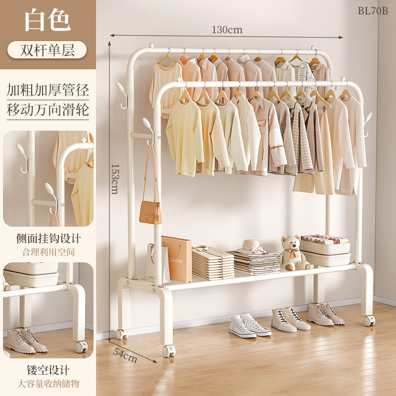 [double-layer double rod 130 white]-four hooks + universal wheel bold type