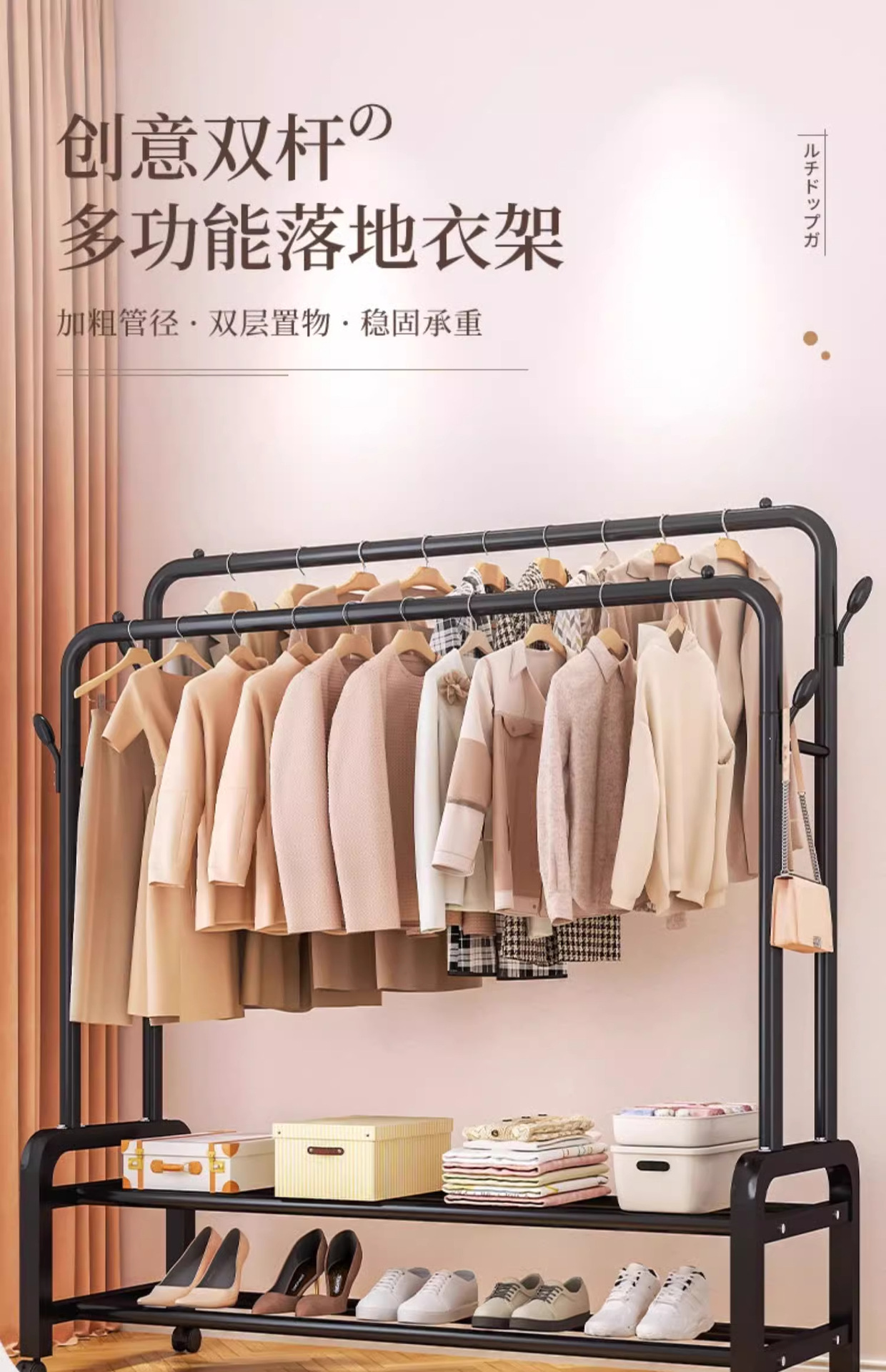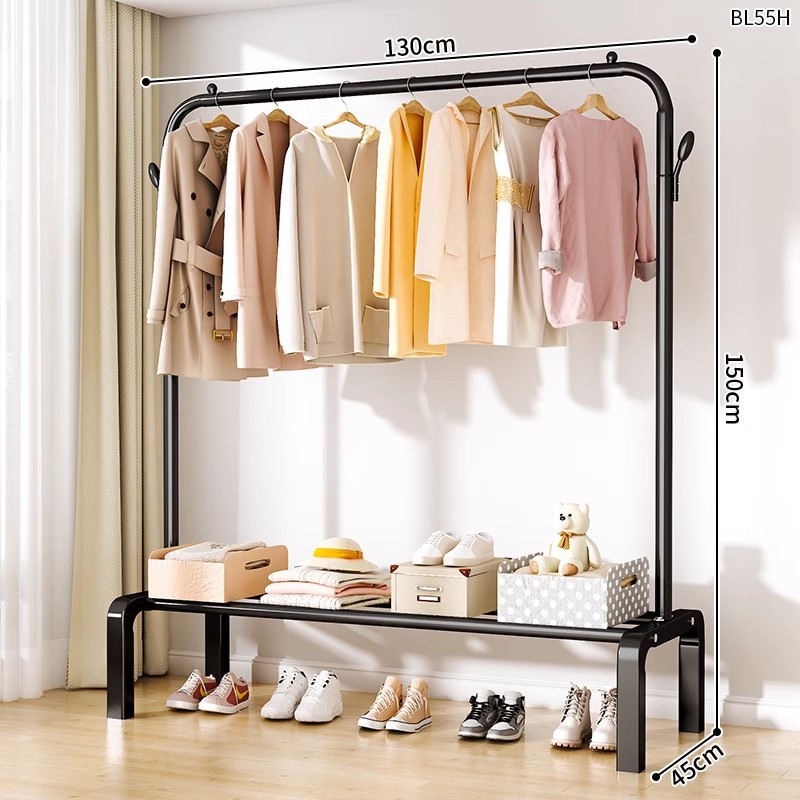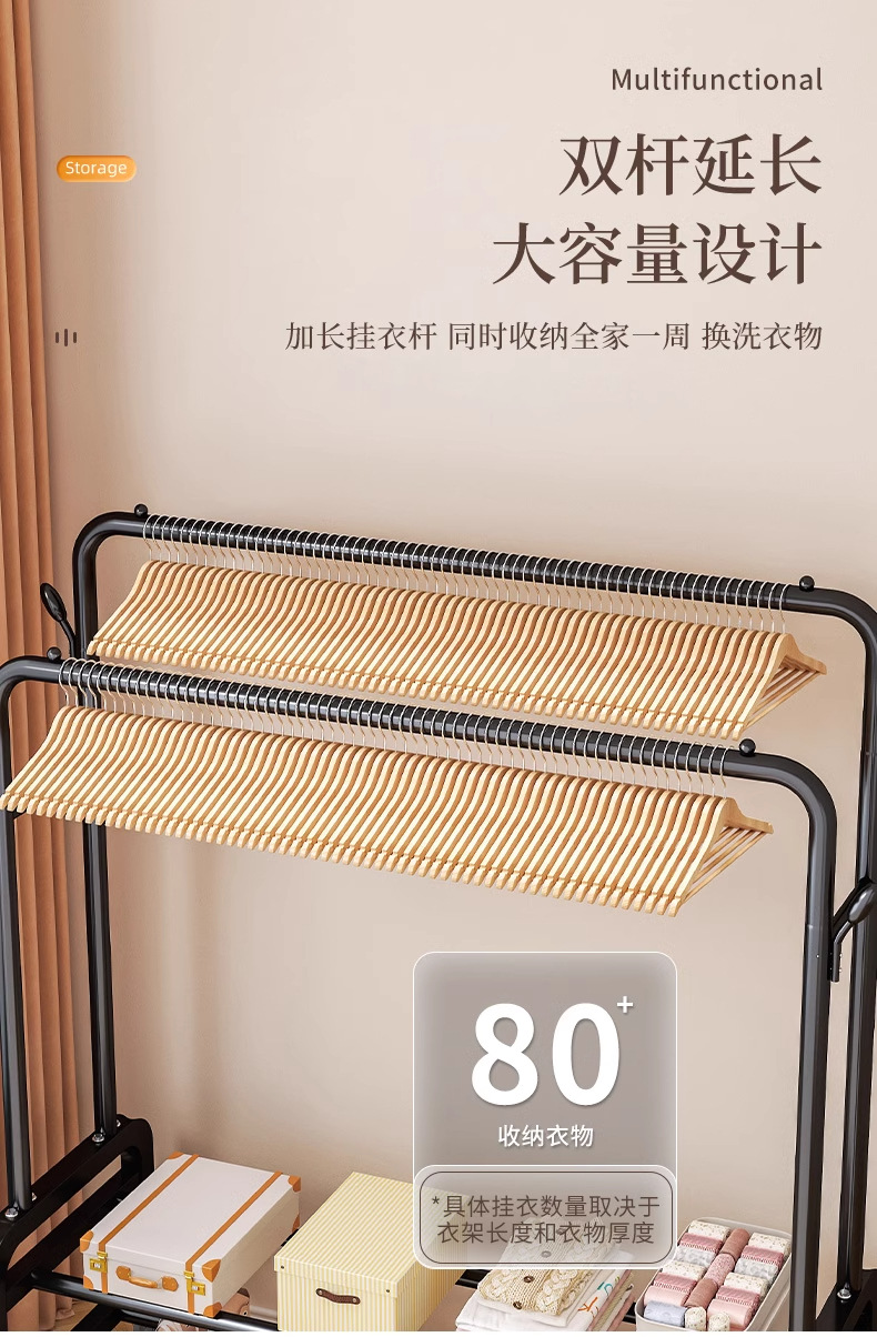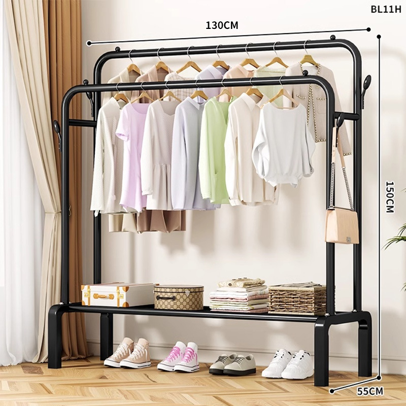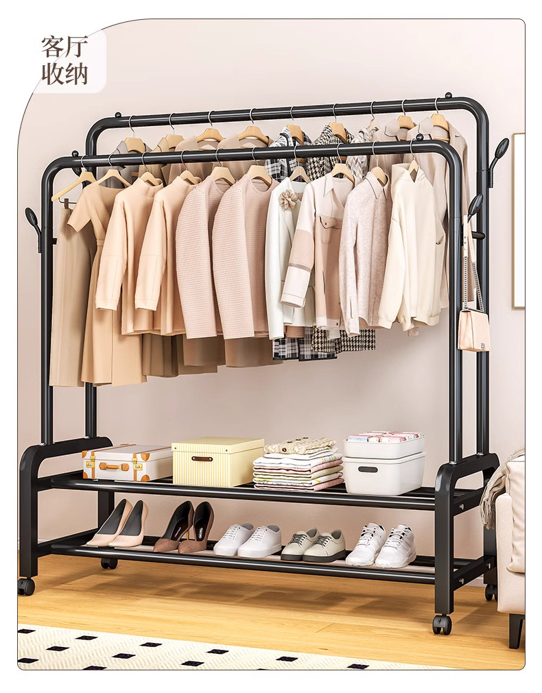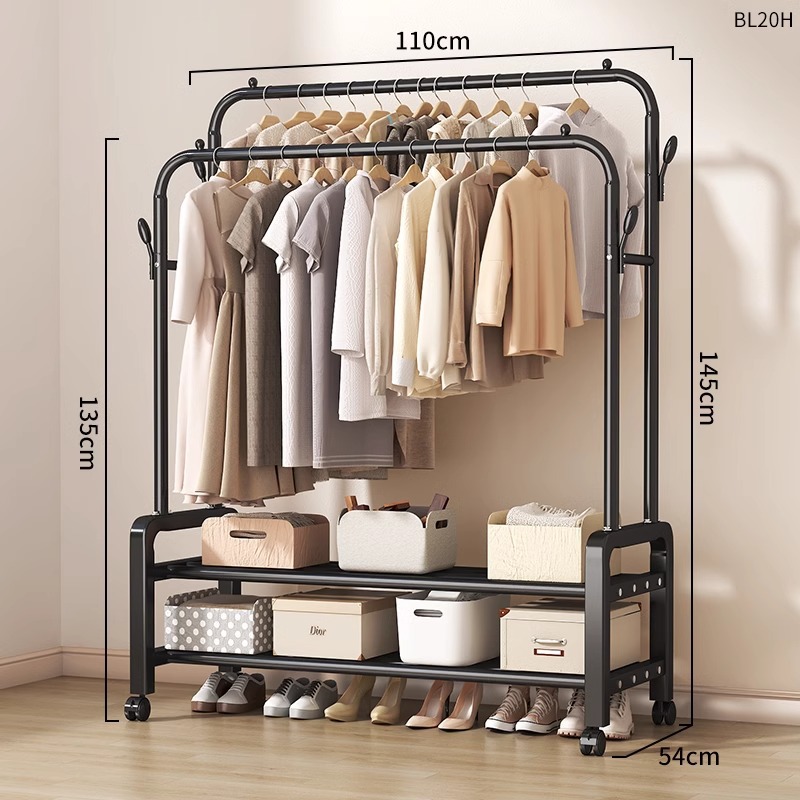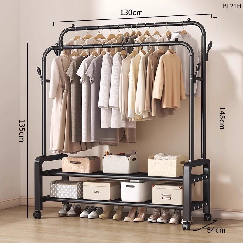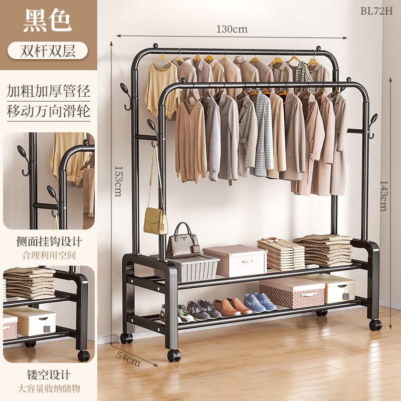 [double-layer double rod 130 black]-four hooks + universal wheel bold type